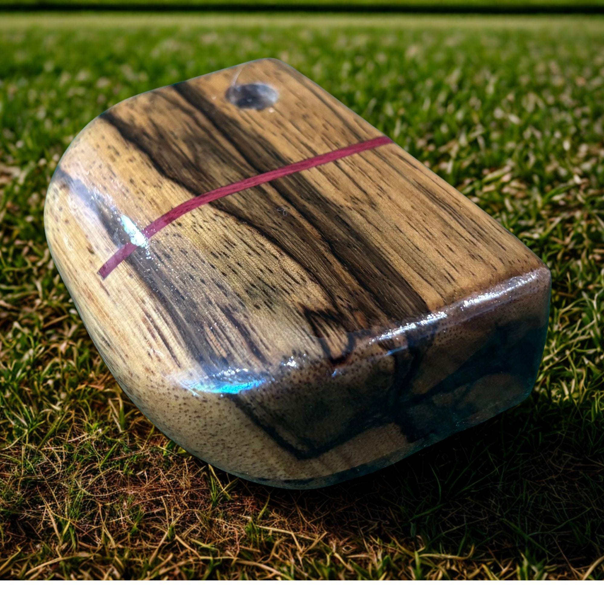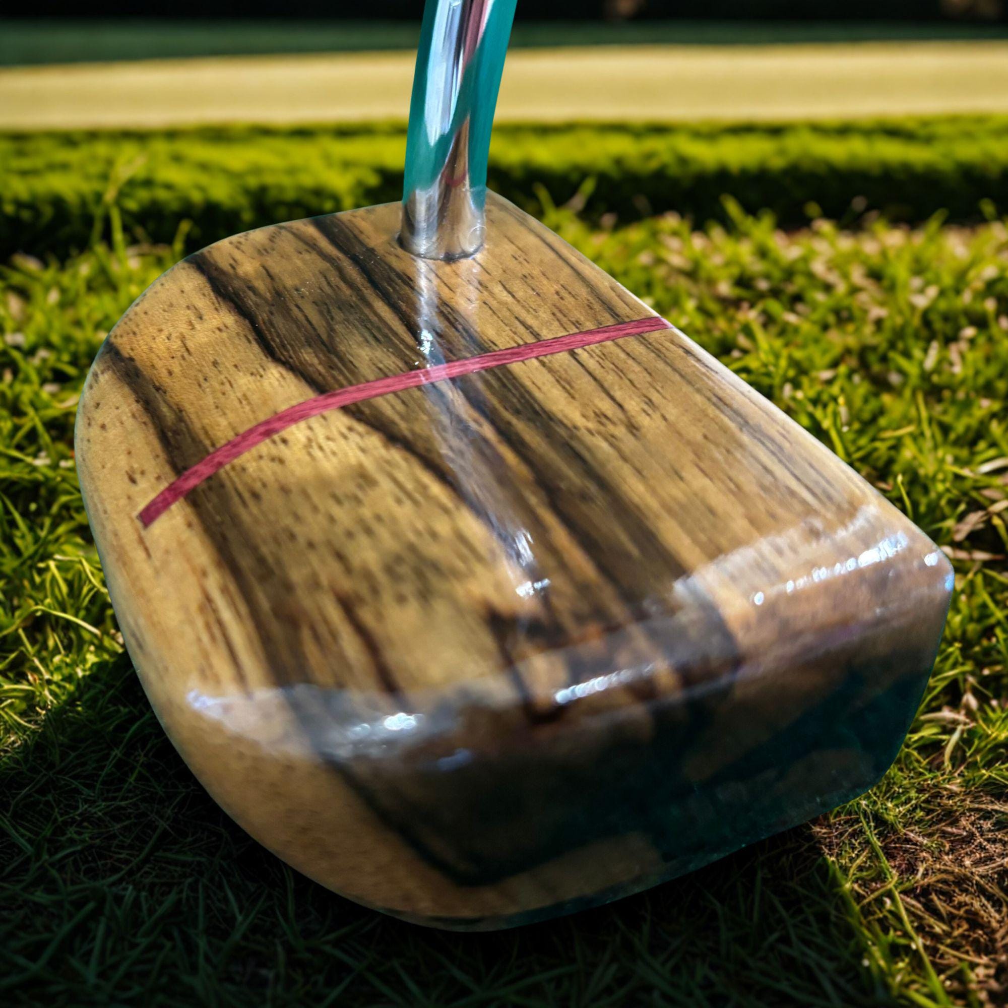 1. Unmatched Craftsmanship: Each putter head is expertly fashioned from solid Black Limba hardwood, cherished for its beautiful and intricate grain color patterns, making each putter a beautiful representation of nature's artistry. Each piece is accented with a Purpleheart center guide line. Finished with high gloss spar urethane, it’s designed for durability and longevity, ensuring it remains a stunning addition to your collection for years to come. Includes a soft headcover for extra protection.