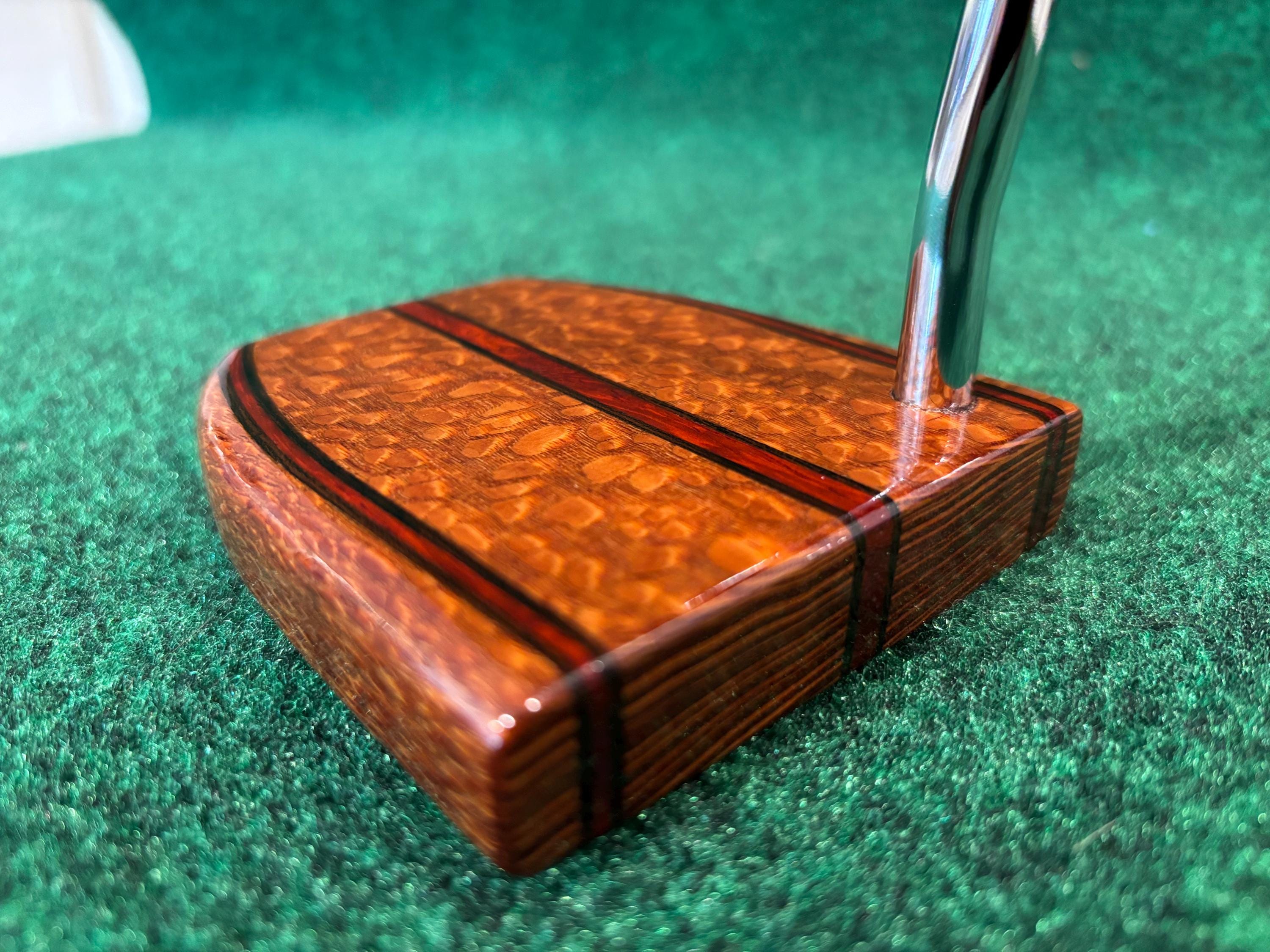 Exquisite Craftsmanship: The head of this putter is made from exotic Leopardwood, and is accentuated by striking Black Wenge and Padauk stripes, featured a red padauk guide line, making every putter a unique and eye-catching conversation starter.