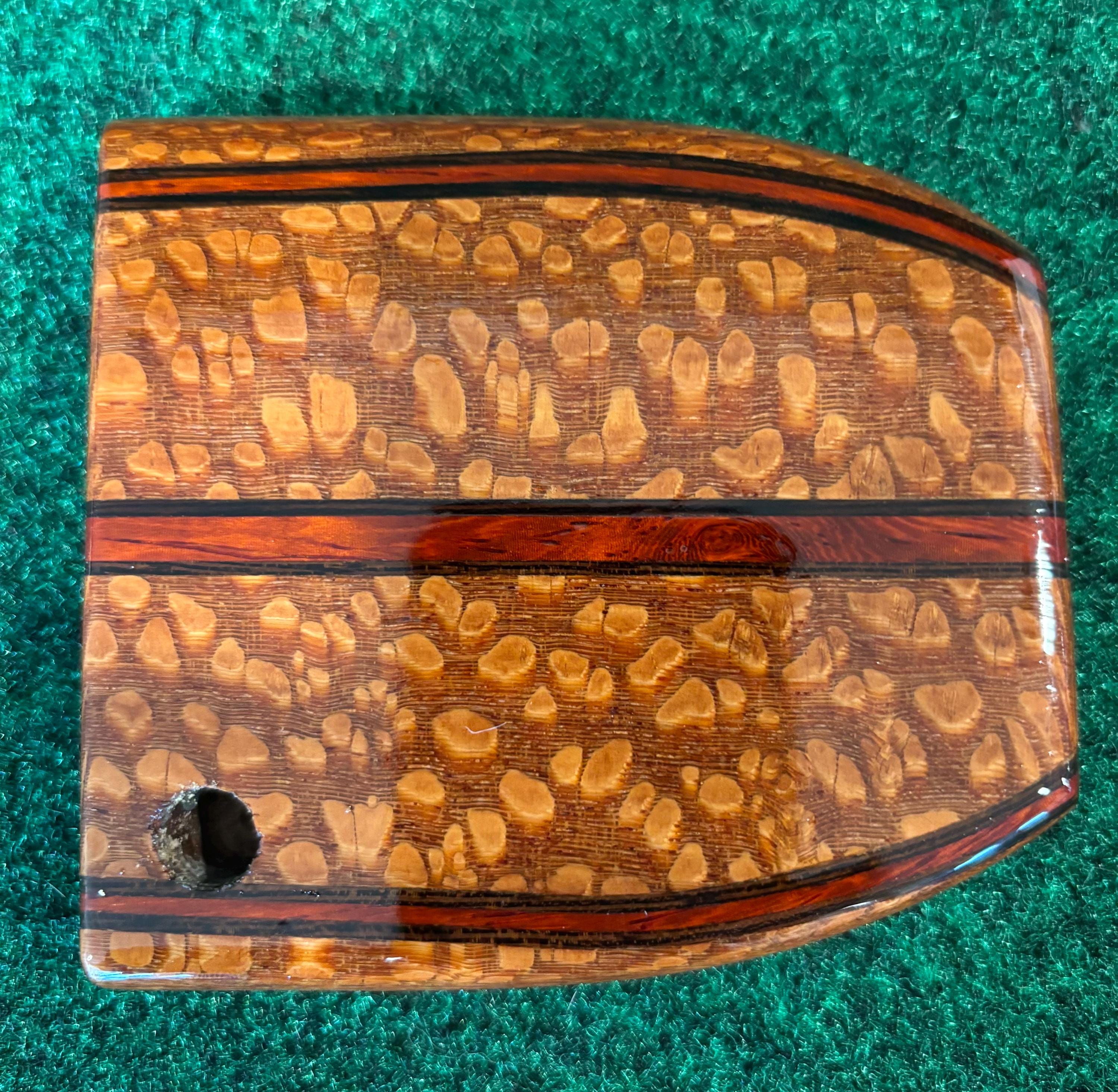 Durability Meets Elegance: Finished with a high gloss spar urethane, this putter is built to withstand the elements while maintaining its stunning appearance season after season. Includes a soft headcover for extra protection.