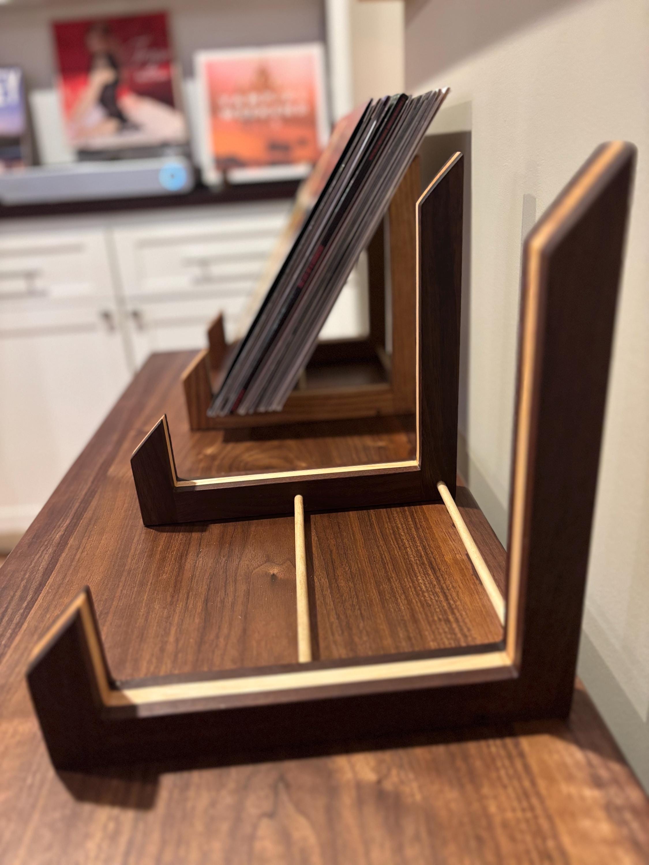 Introducing our Vinyl Record Display Flip Rack, a stunning way to showcase your cherished vinyl collection while keeping it organized and easily accessible. Handcrafted with love from premium Walnut and Maple hardwoods, this beautiful piece not only enhances your space but also transforms your album covers into eye-catching art.