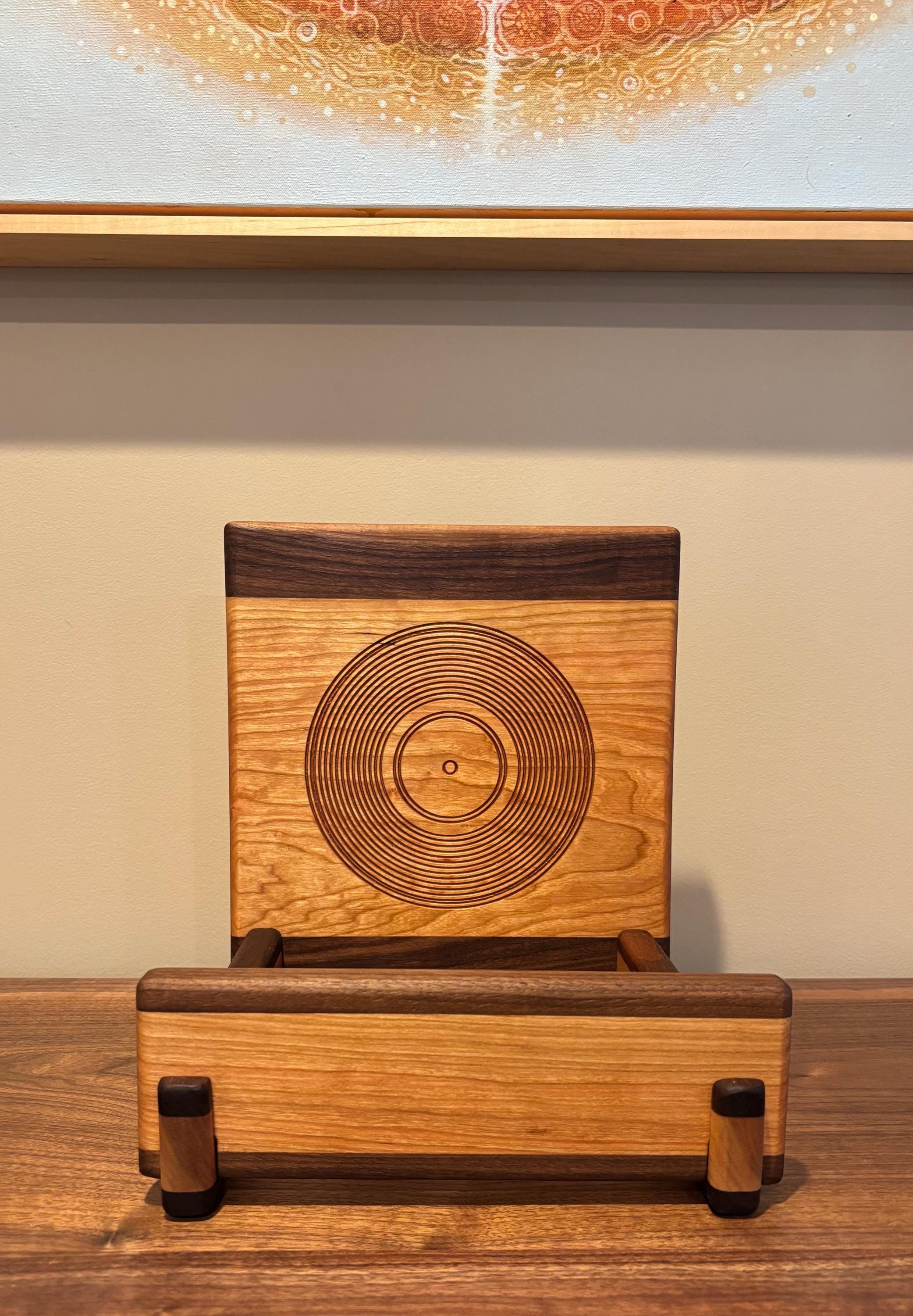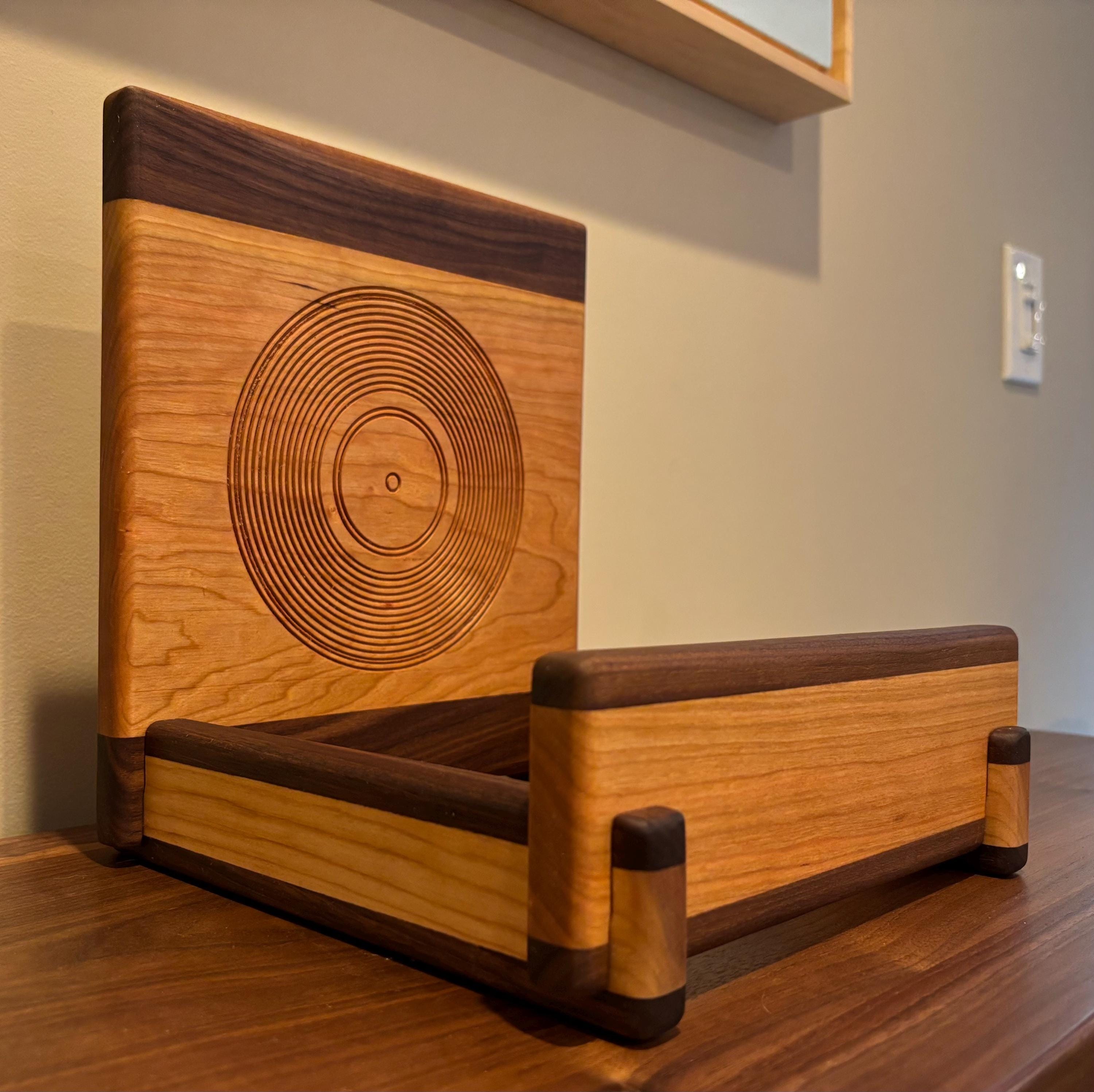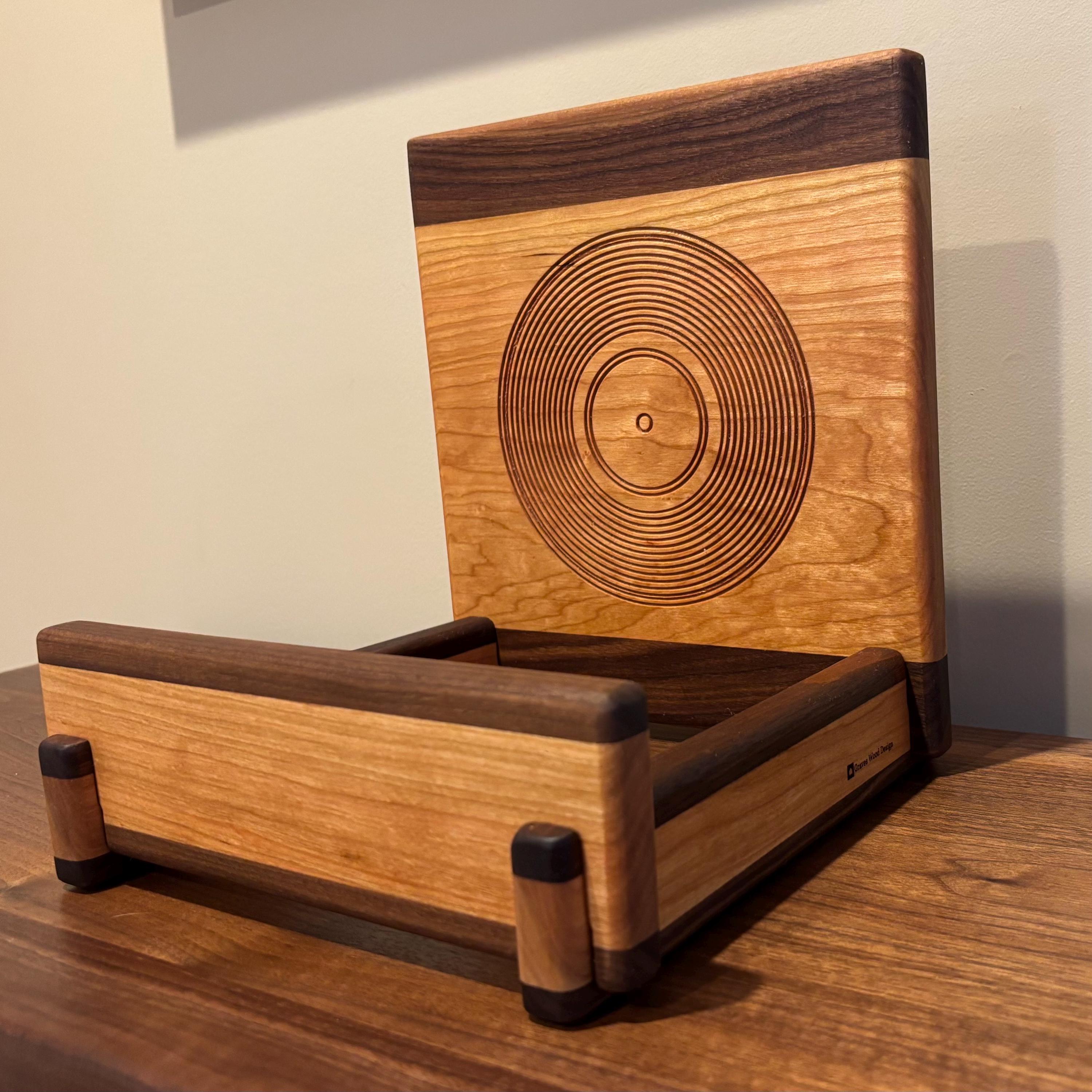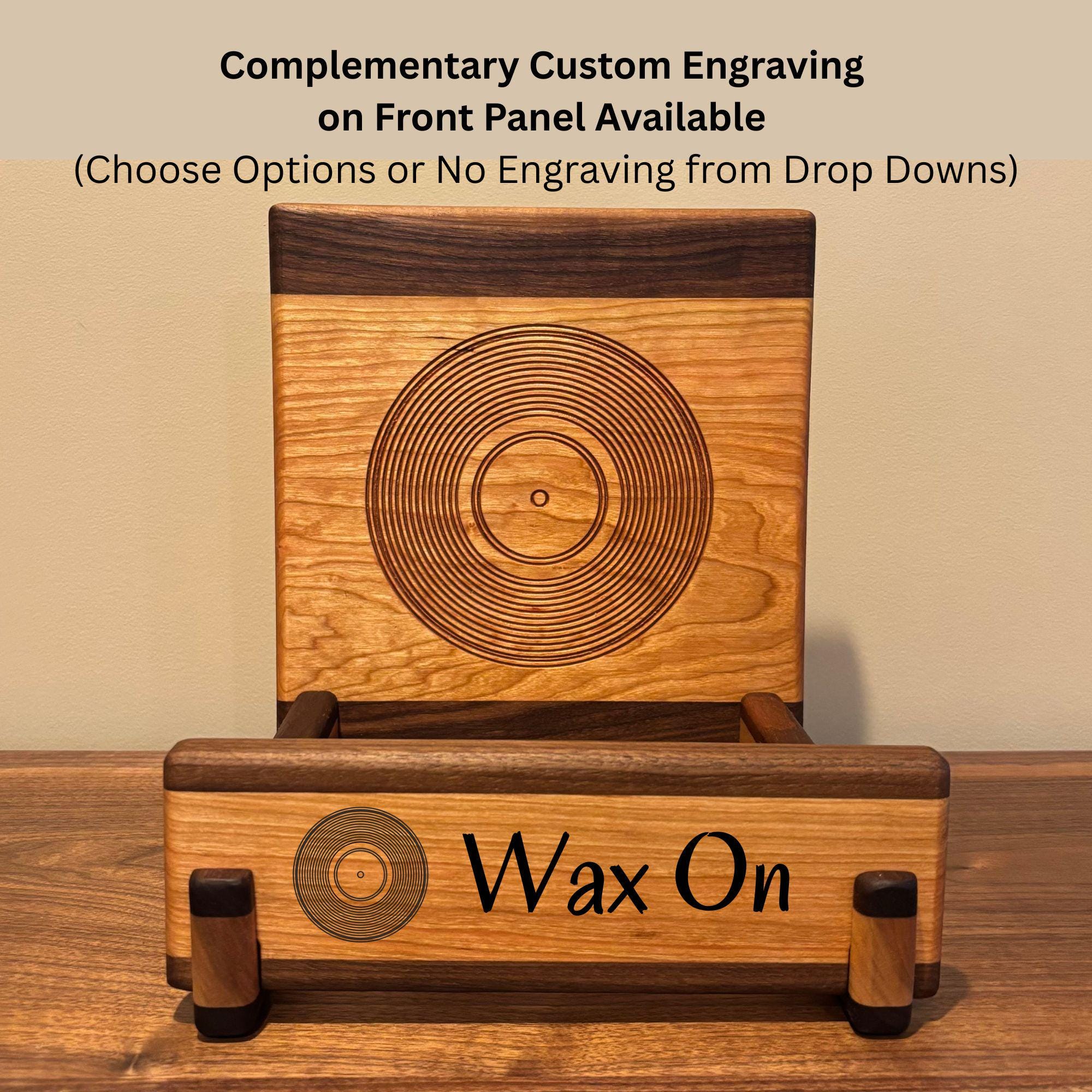 Introducing our Personalizable Vinyl Record Display Flip Rack, a stunning way to showcase your cherished vinyl collection while keeping it organized and easily accessible. Handcrafted from premium Walnut and Cherry, this beautiful piece not only transforms your album covers into eye-catching art, but offers personalization to make it unique to you or someone you love.
