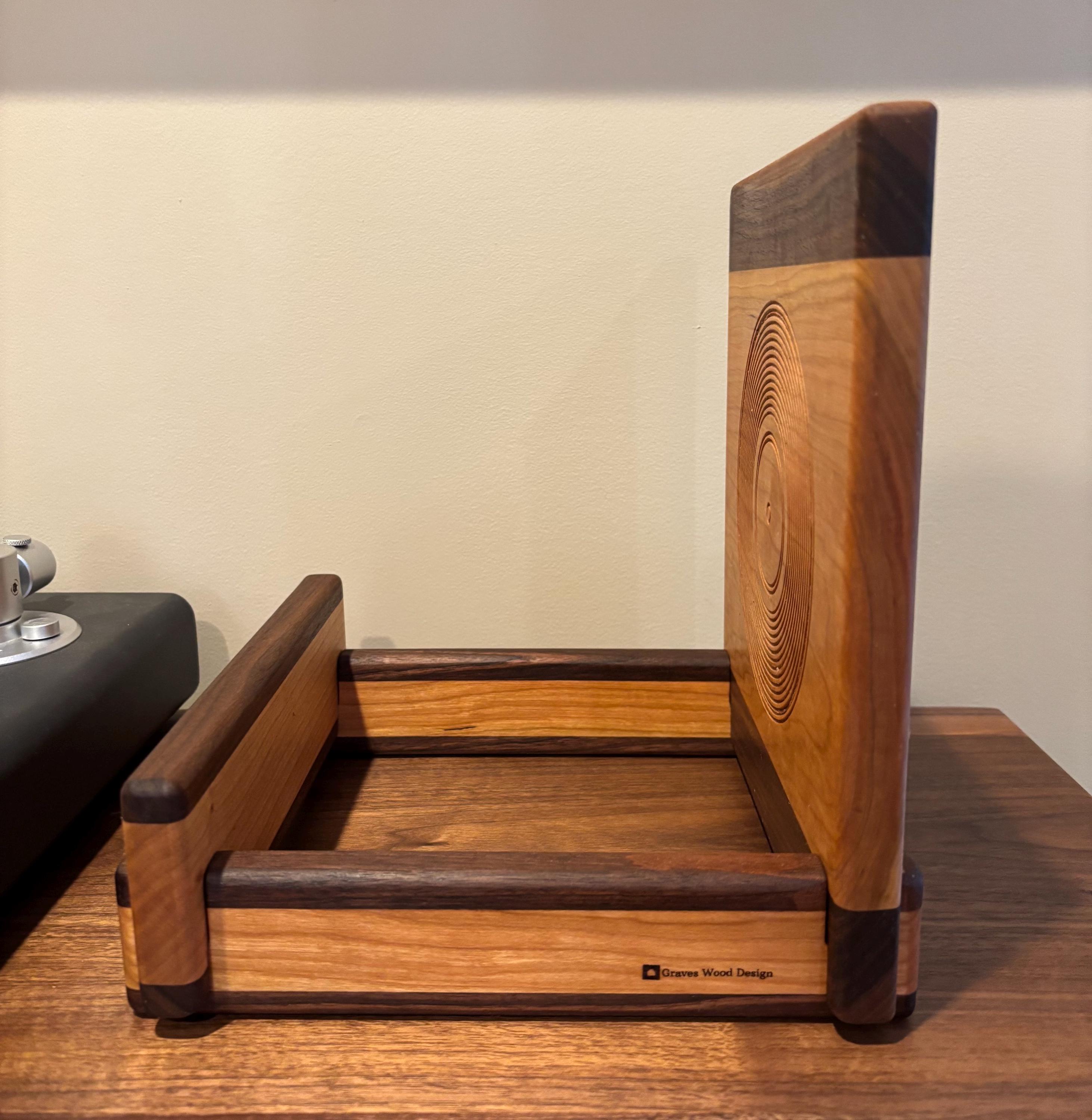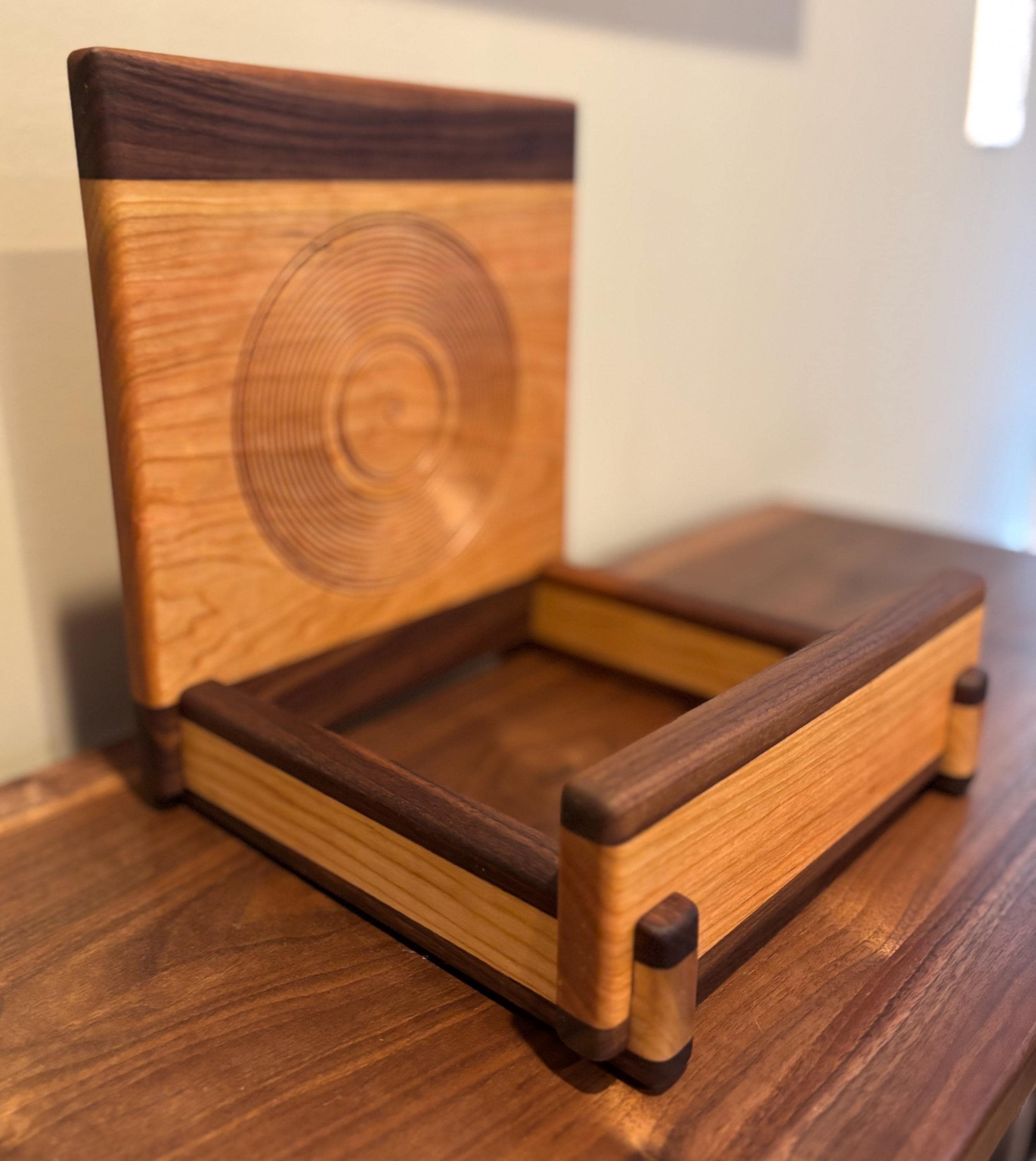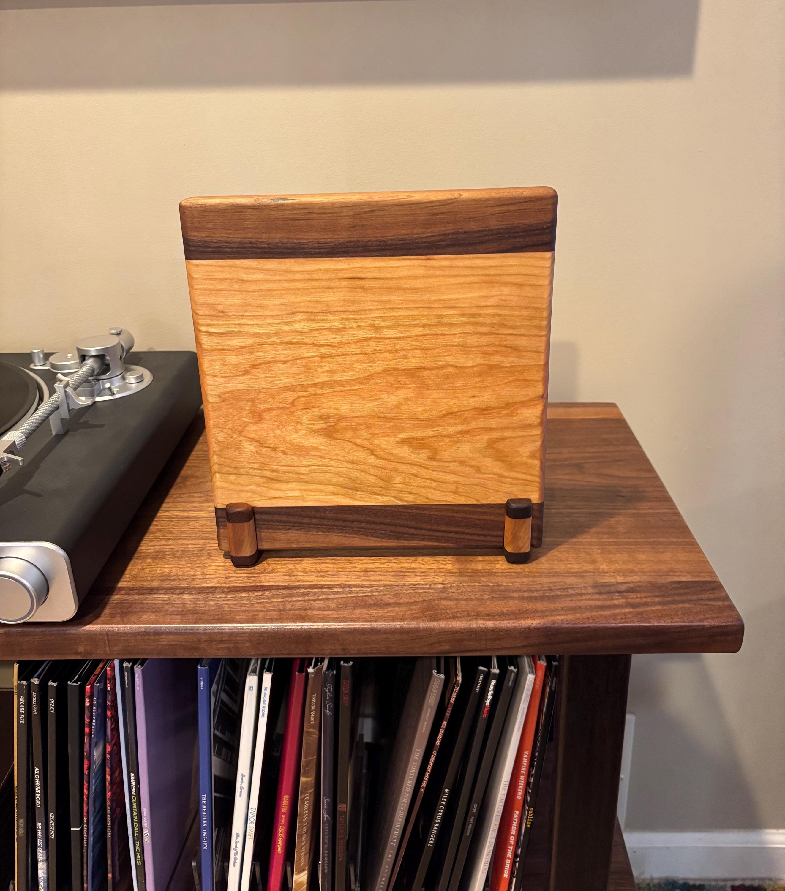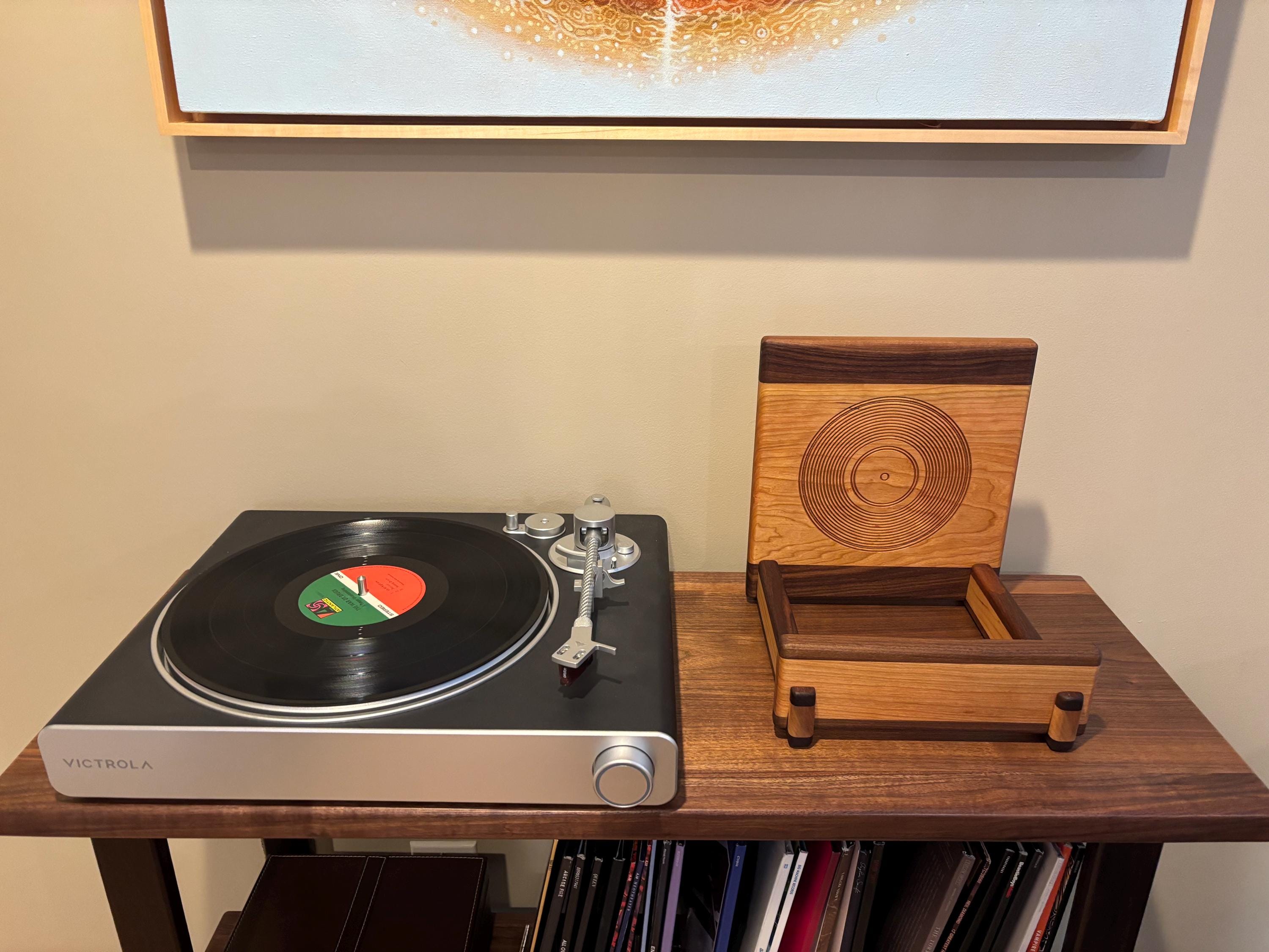 Introducing our Personalizable Vinyl Record Display Flip Rack, a stunning way to showcase your cherished vinyl collection while keeping it organized and easily accessible. Handcrafted from premium Walnut and Cherry, this beautiful piece not only transforms your album covers into eye-catching art, but offers personalization to make it unique to you or someone you love.