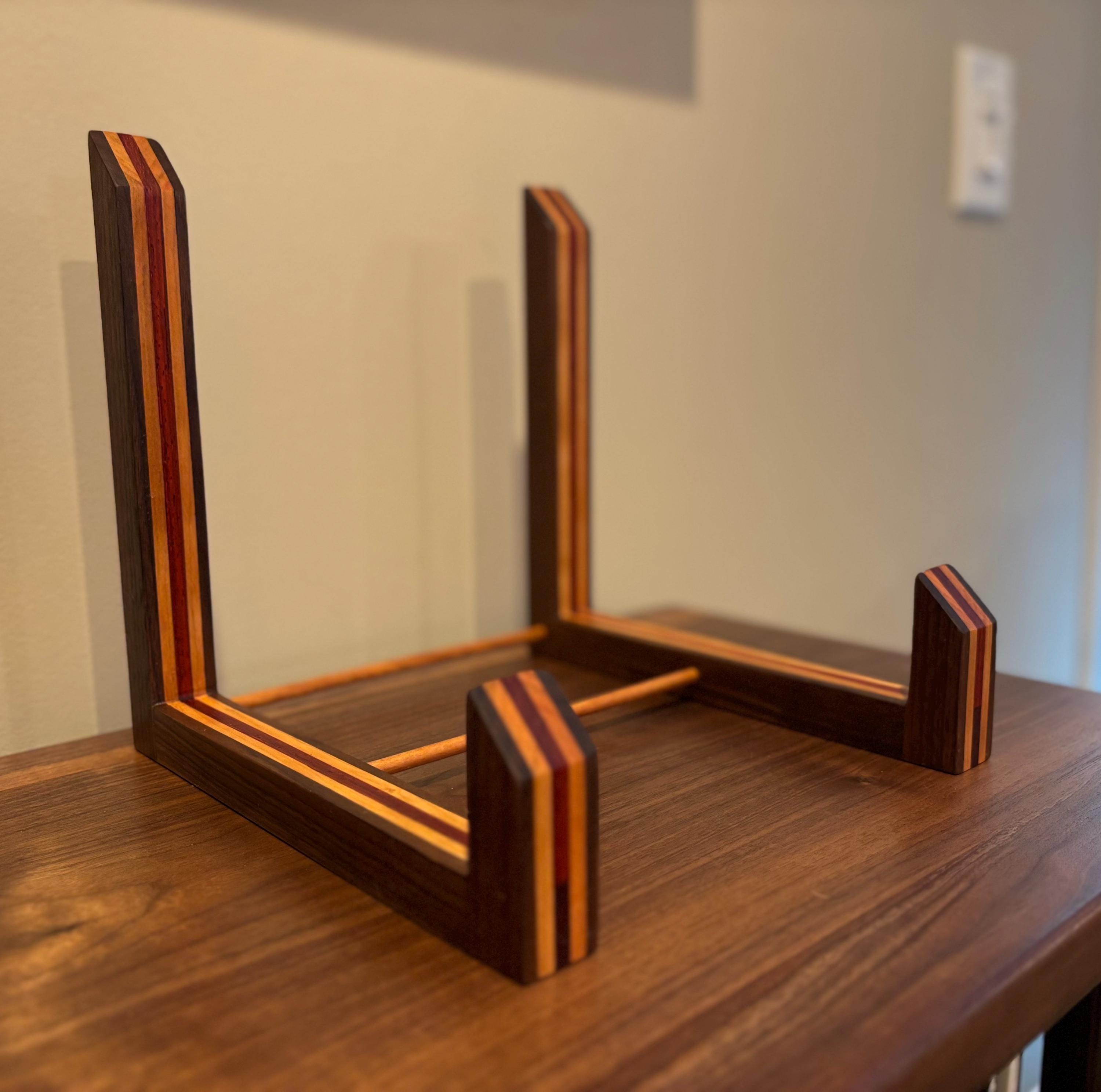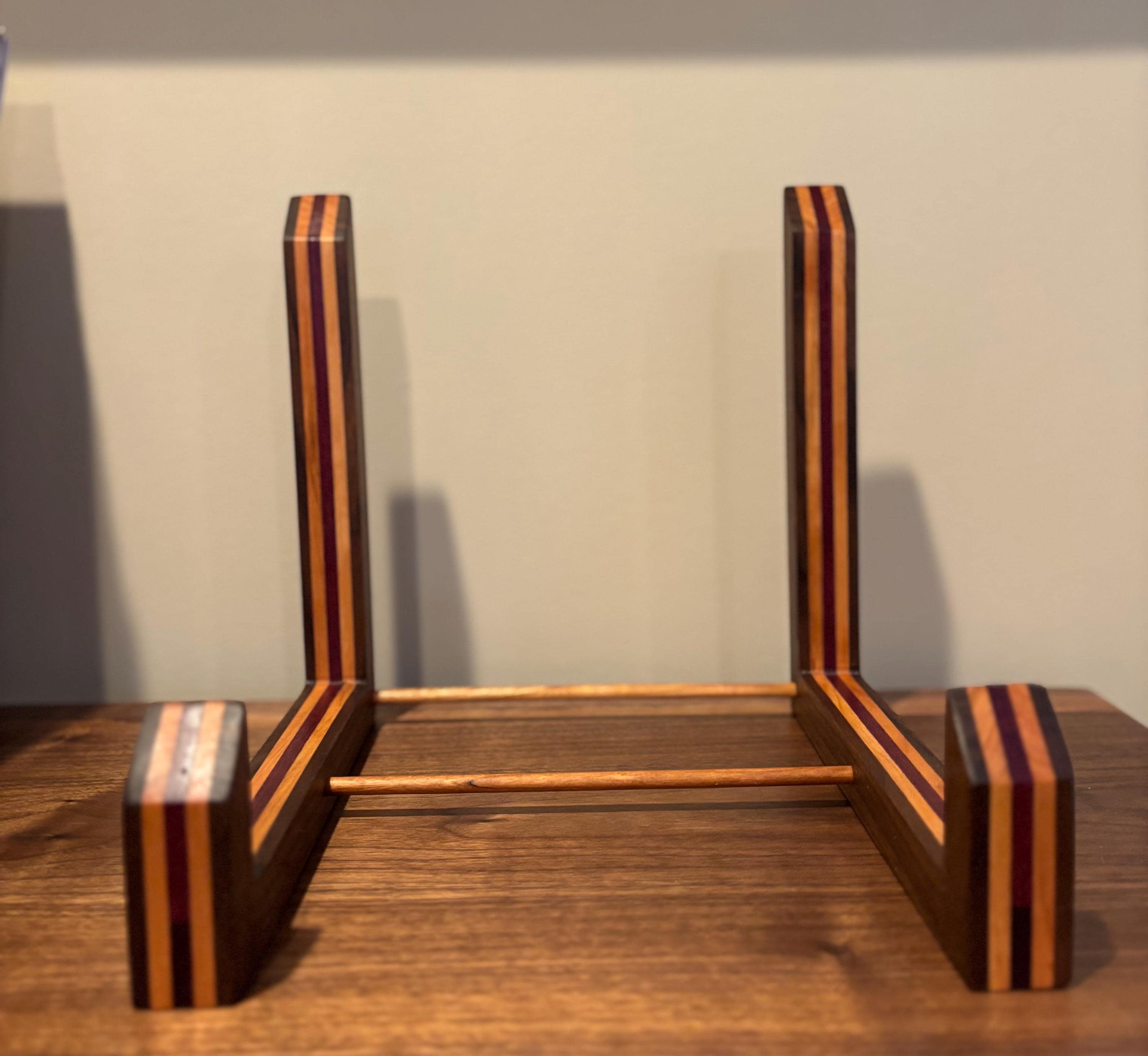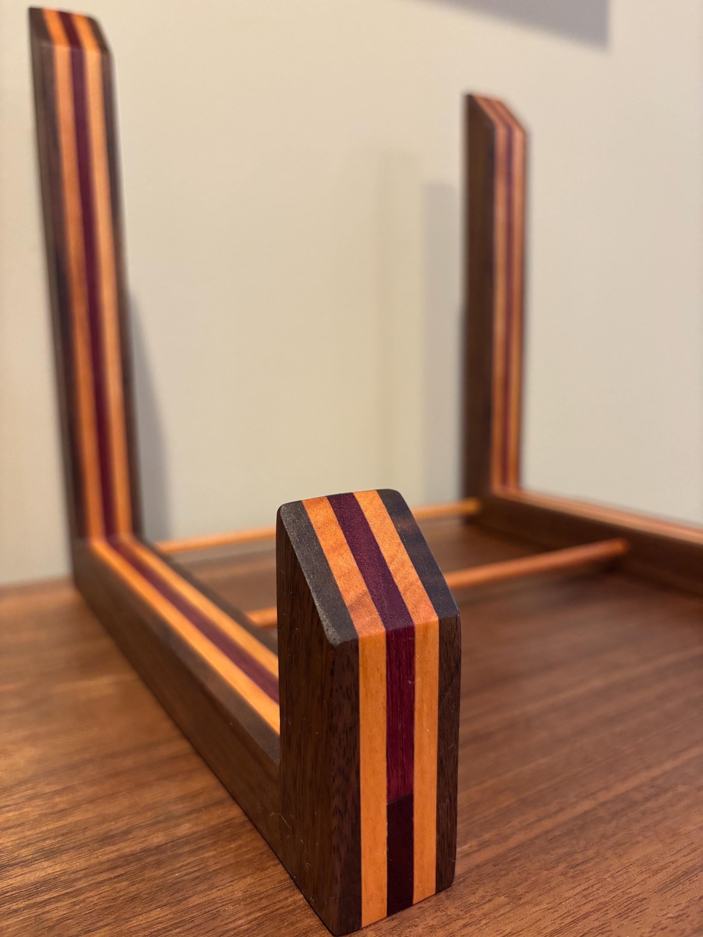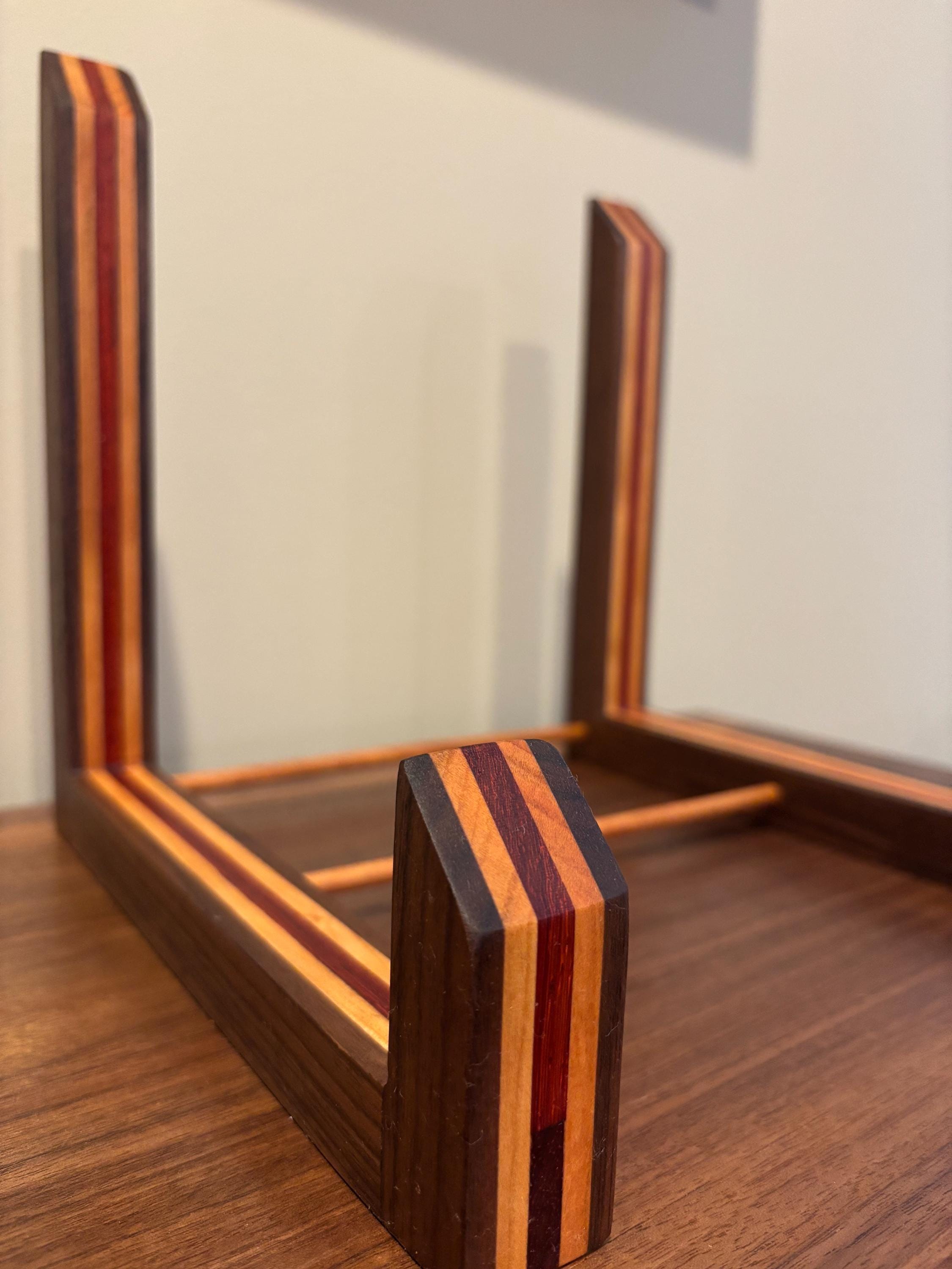 The sleek, timeless design of our rack and choice of vibrant accent stripes will fit into any decor, making it a must-have for vinyl lovers and home decorators alike. Choose from a purple stripe (purpleheart) or red stripe (padauk). All colors reflect the natural color of the woods, no stains or dyes, here, just the natural color of the wood. Whether you're showcasing vintage finds or the latest releases, this flip rack is the ideal solution for turning your collection into a stunning focal point.