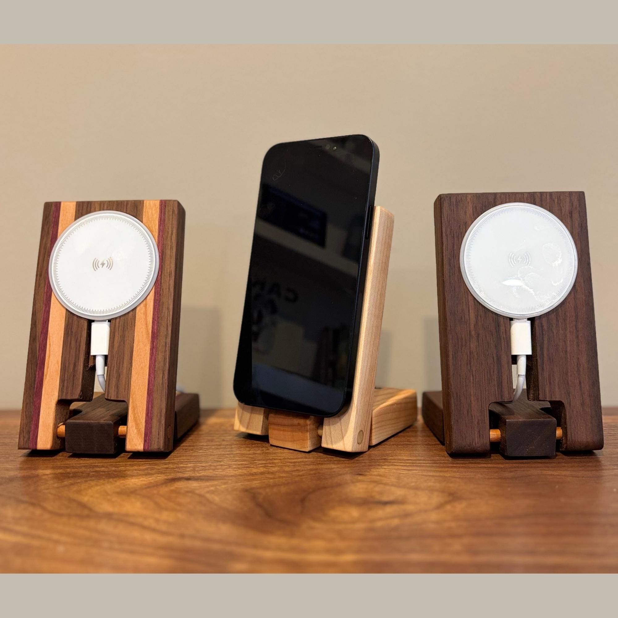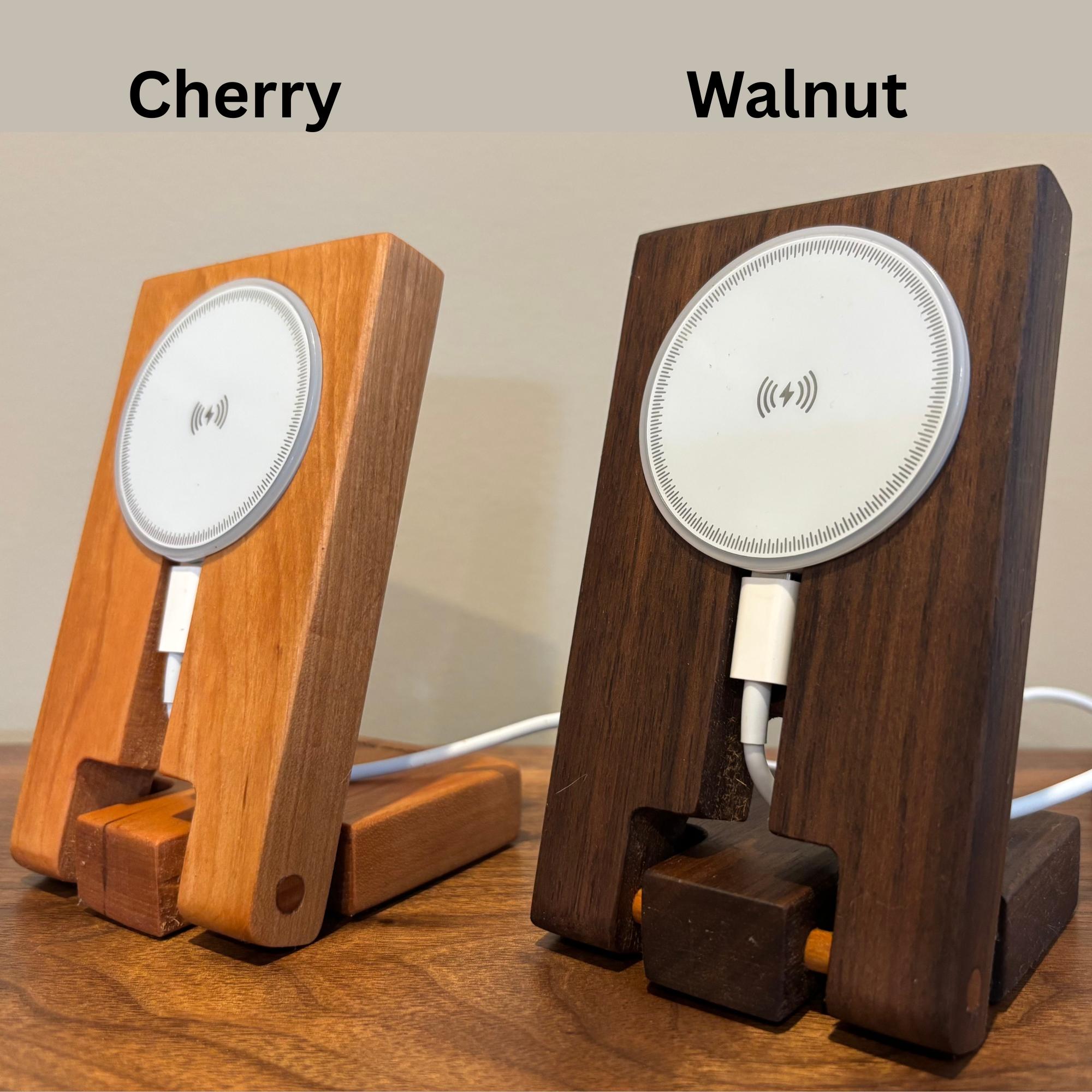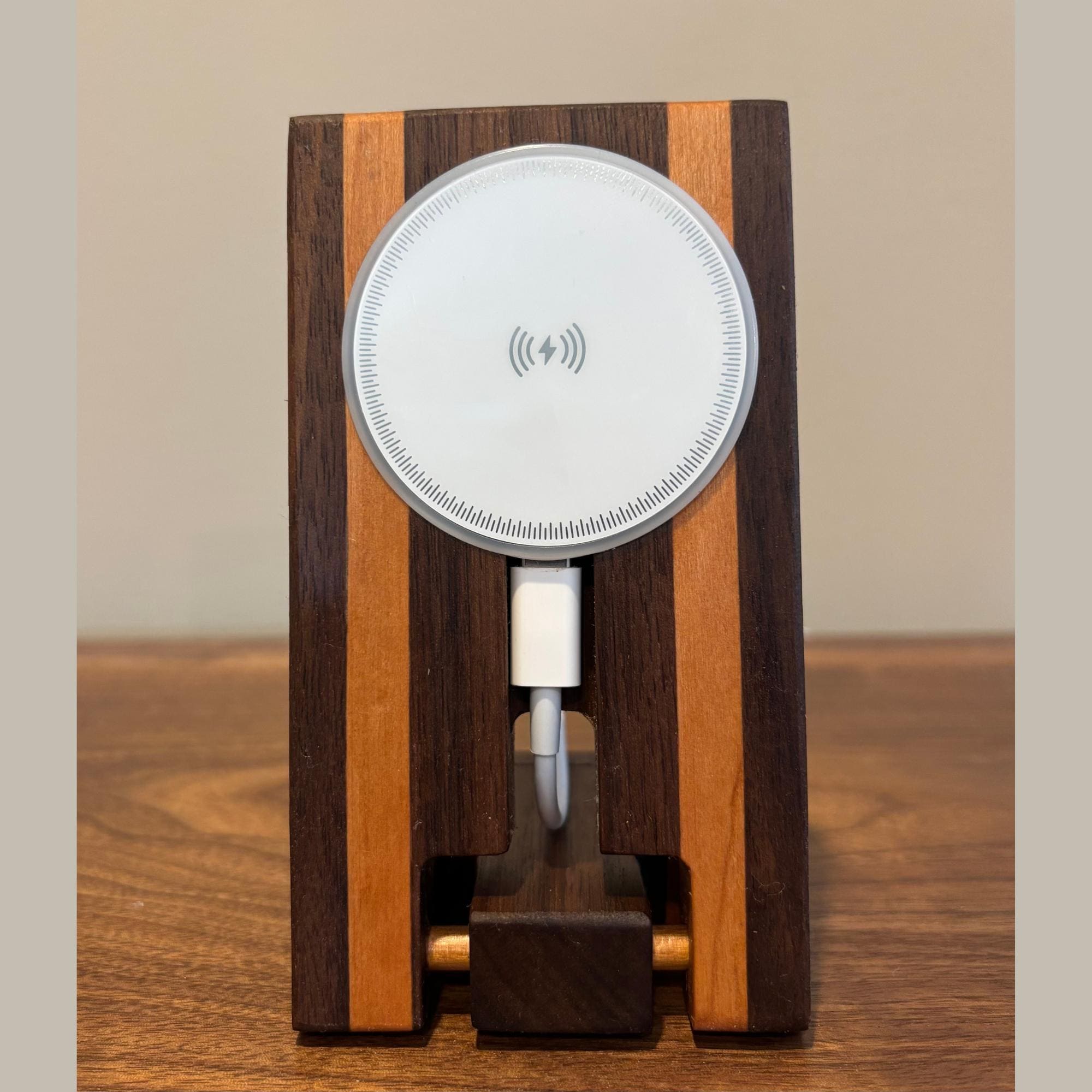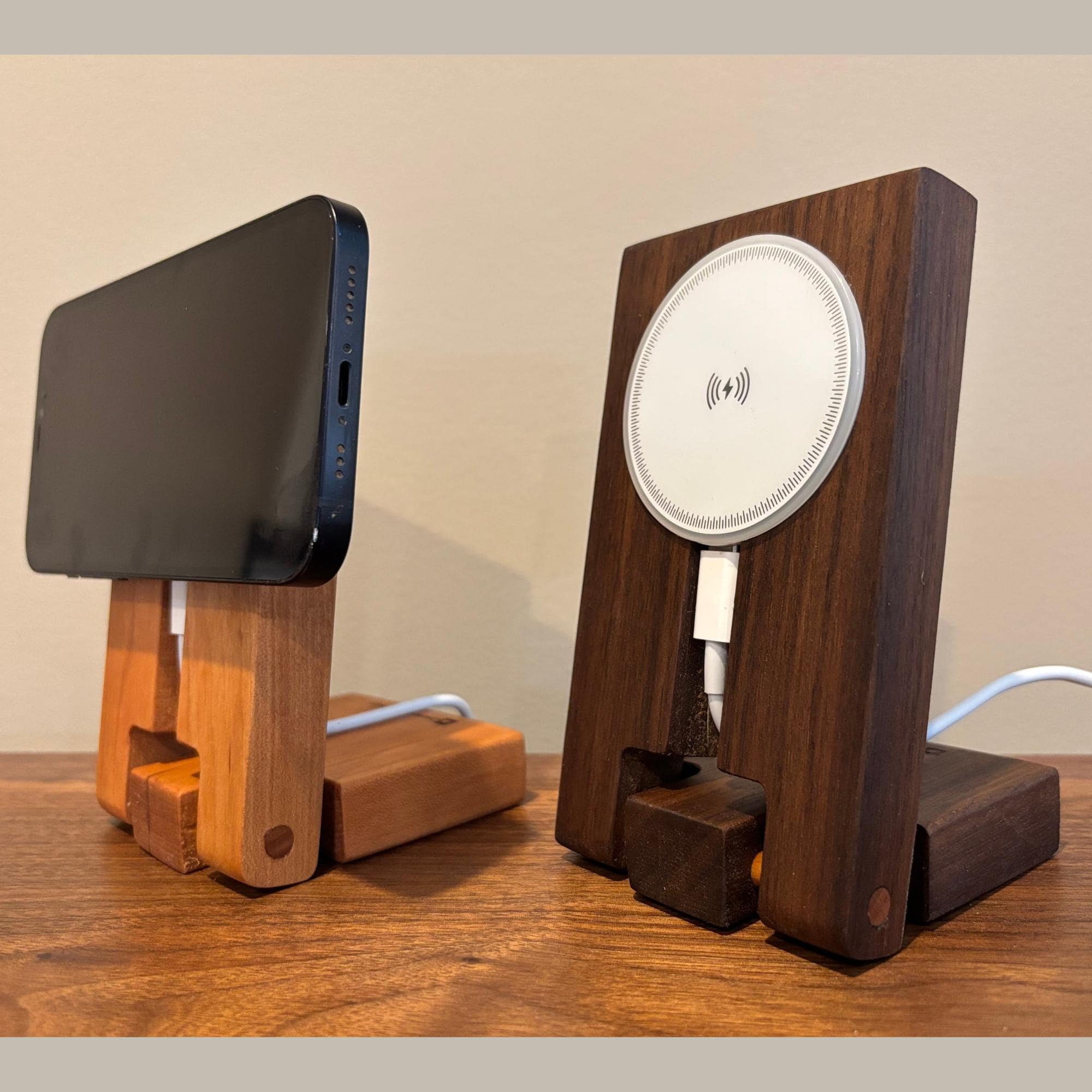 Elevate your charging experience with our Adjustable Wooden MagSafe Phone Charger, a perfect blend of style and functionality. Handcrafted from premium hardwoods, this desk charging station is not just a tech accessory but a statement piece for your workspace. The natural beauty of the wood complements any decor while ensuring your device stays charged and ready to go.