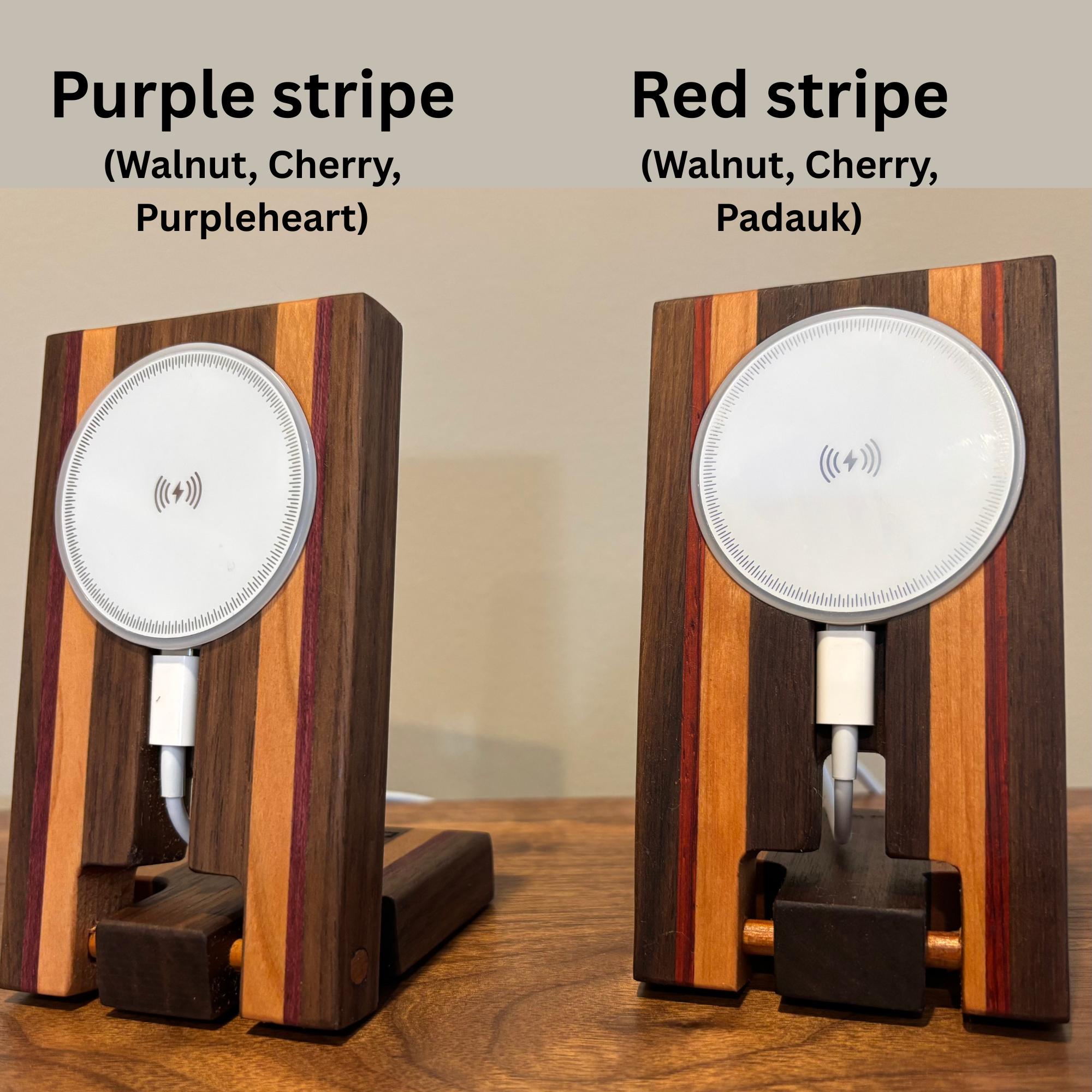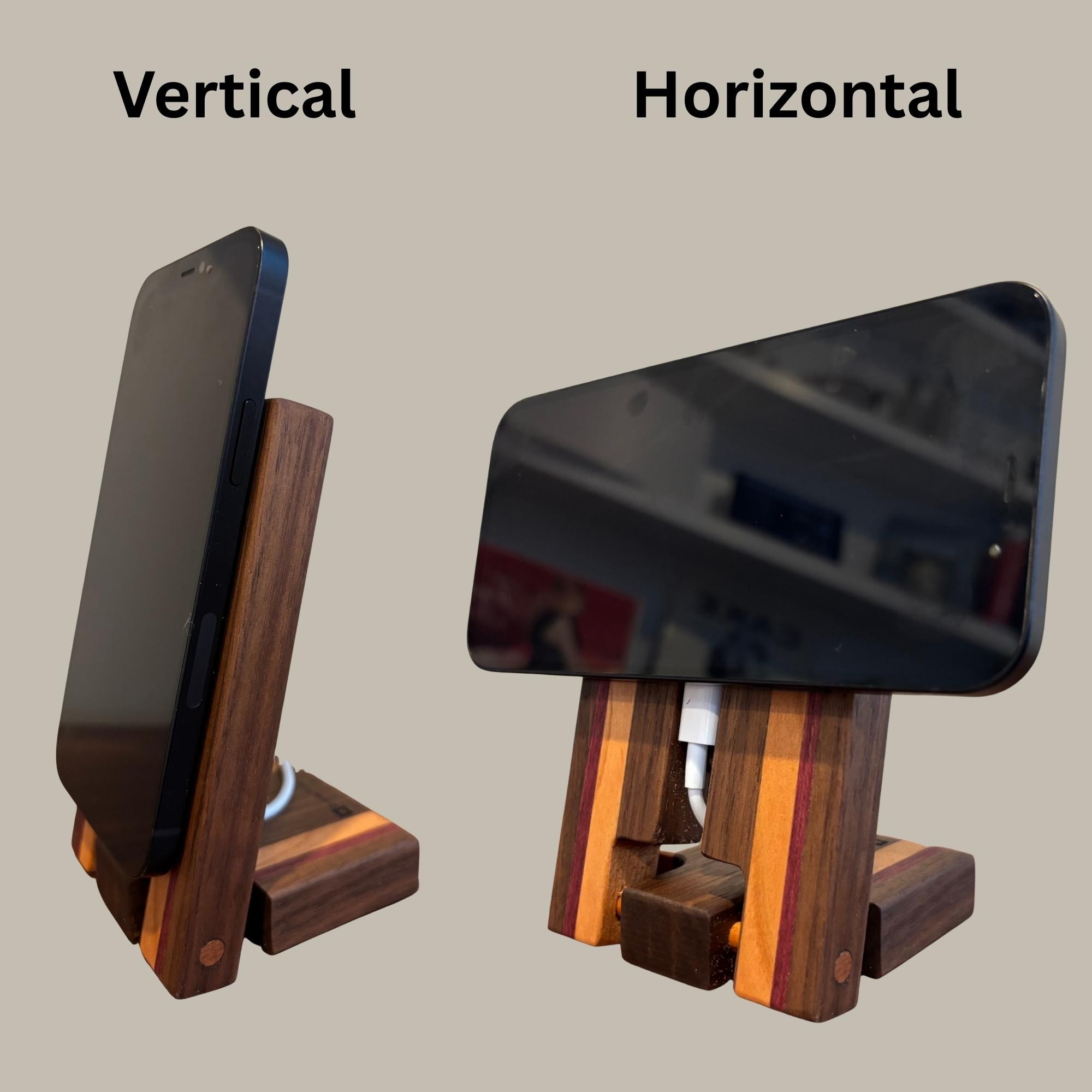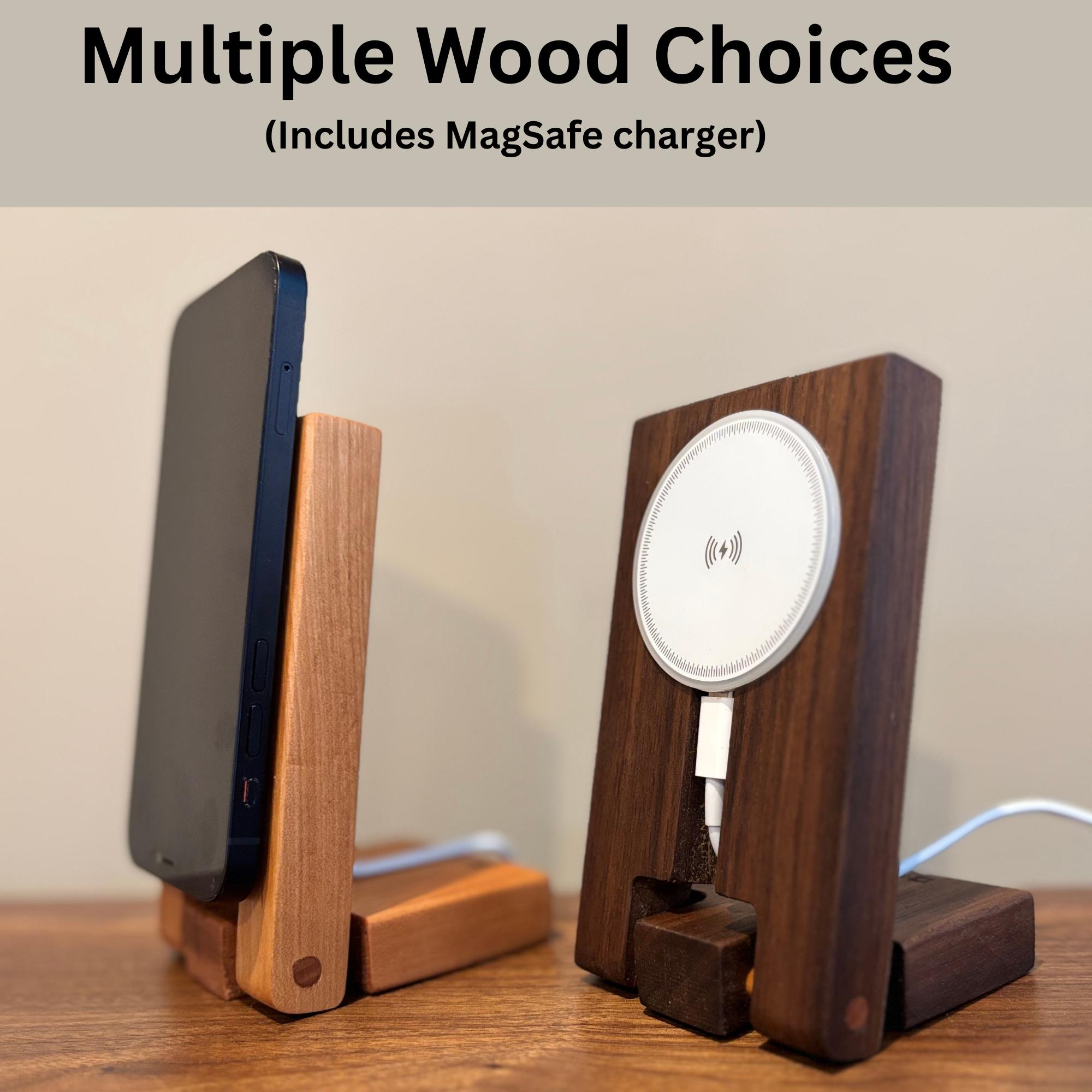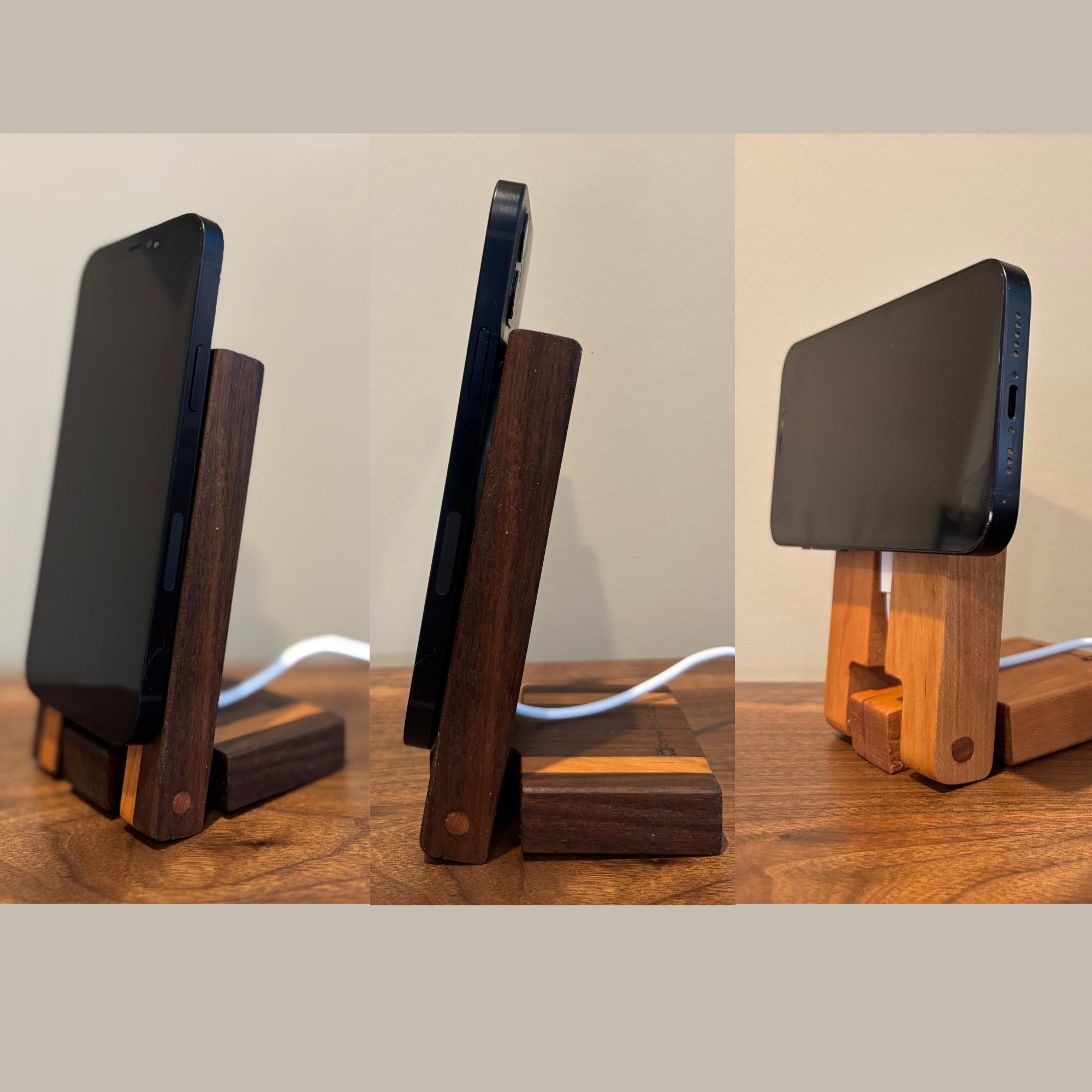 Designed with versatility in mind, our adjustable stand allows you to find the perfect angle for your phone, whether you're video calling, watching your favorite shows, or simply charging overnight. The MagSafe charger is included free with the purchase of the wooden stand and is compatible with your iPhone and other Qi-enabled devices. Plus, its portable design means you can easily take it from home to office, living room to bedroom, or anywhere else you need to charge with ease.