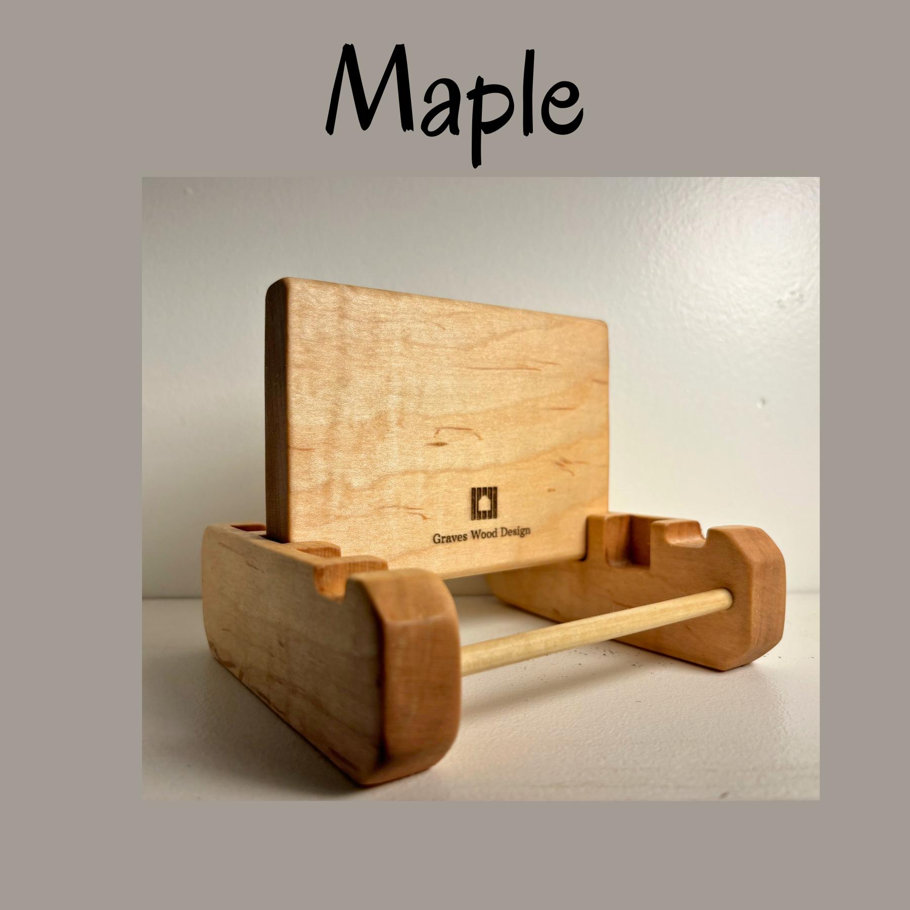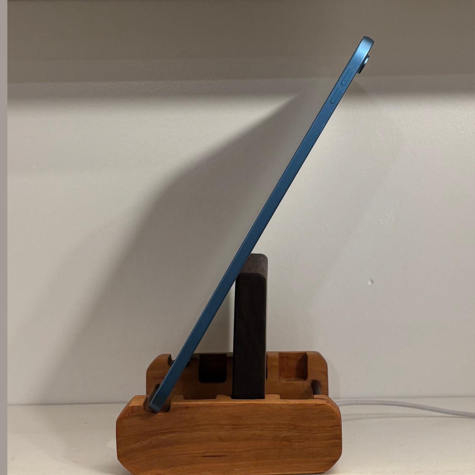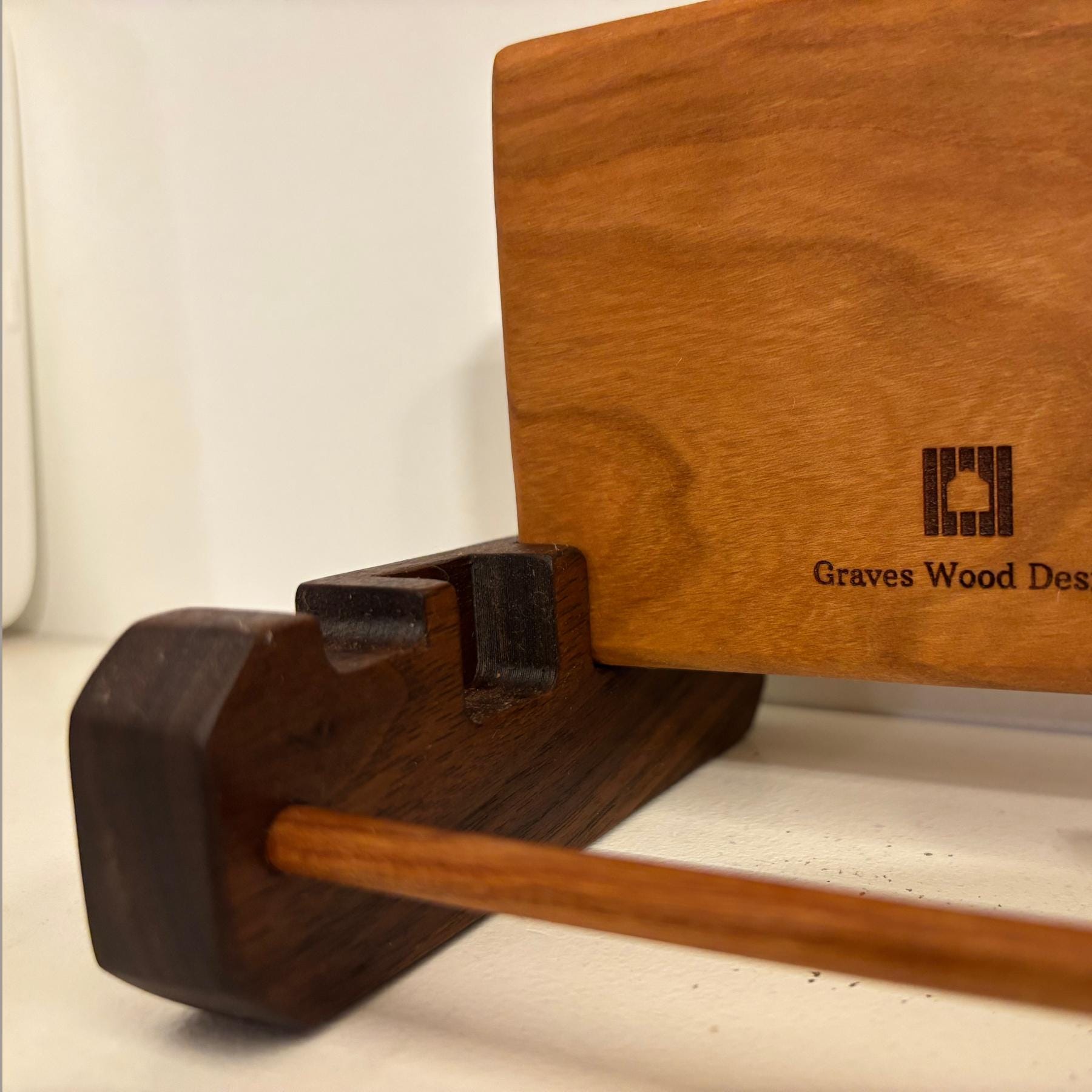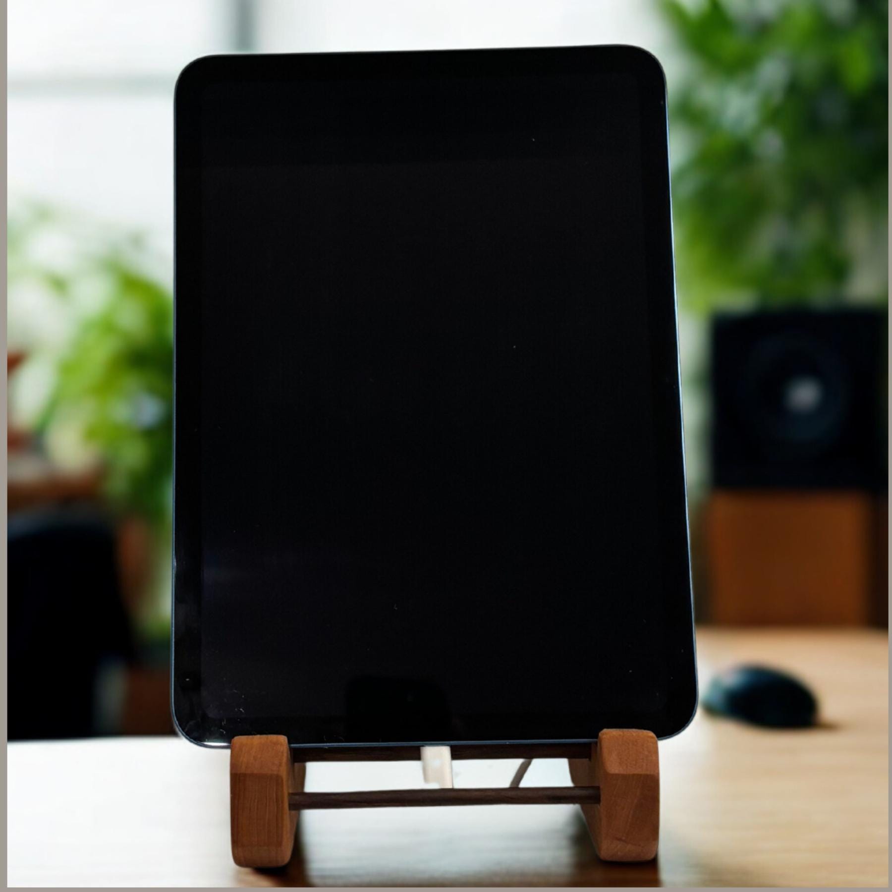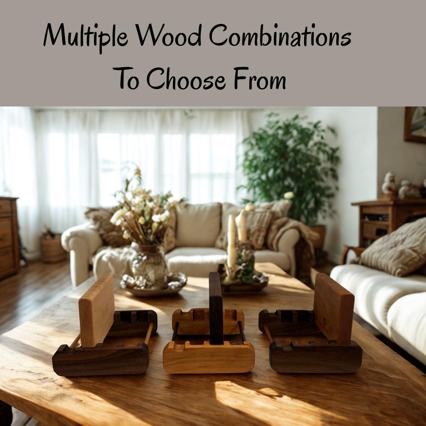 Introducing our Adjustable Wooden iPad Stand. Crafted from solid hardwoods, and available in a multitude of wood color combinations, this stand not only elevates your device, but also enhances your decor. Its warm wood tones and beautiful design complements any room, whether you're working from home, watching movies, or following recipes in the kitchen.
