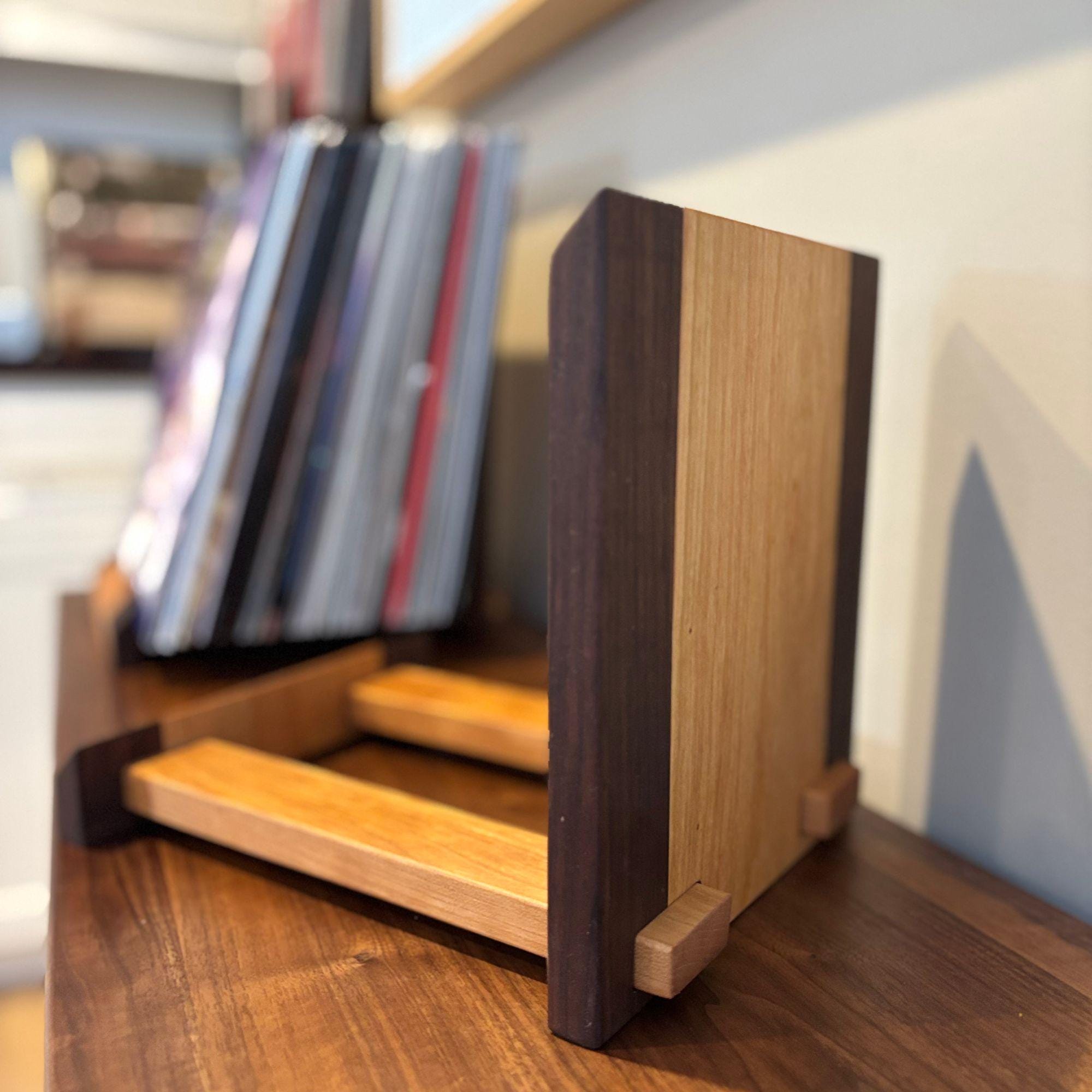 Introducing our Adjustable Vinyl Record Display, a stunning and clever way to showcase your cherished vinyl collection while keeping it organized and easily accessible. Handcrafted from premium Walnut and Cherry, this beautiful piece not only transforms your album covers into eye-catching art, it adjusts as your collection and needs change.