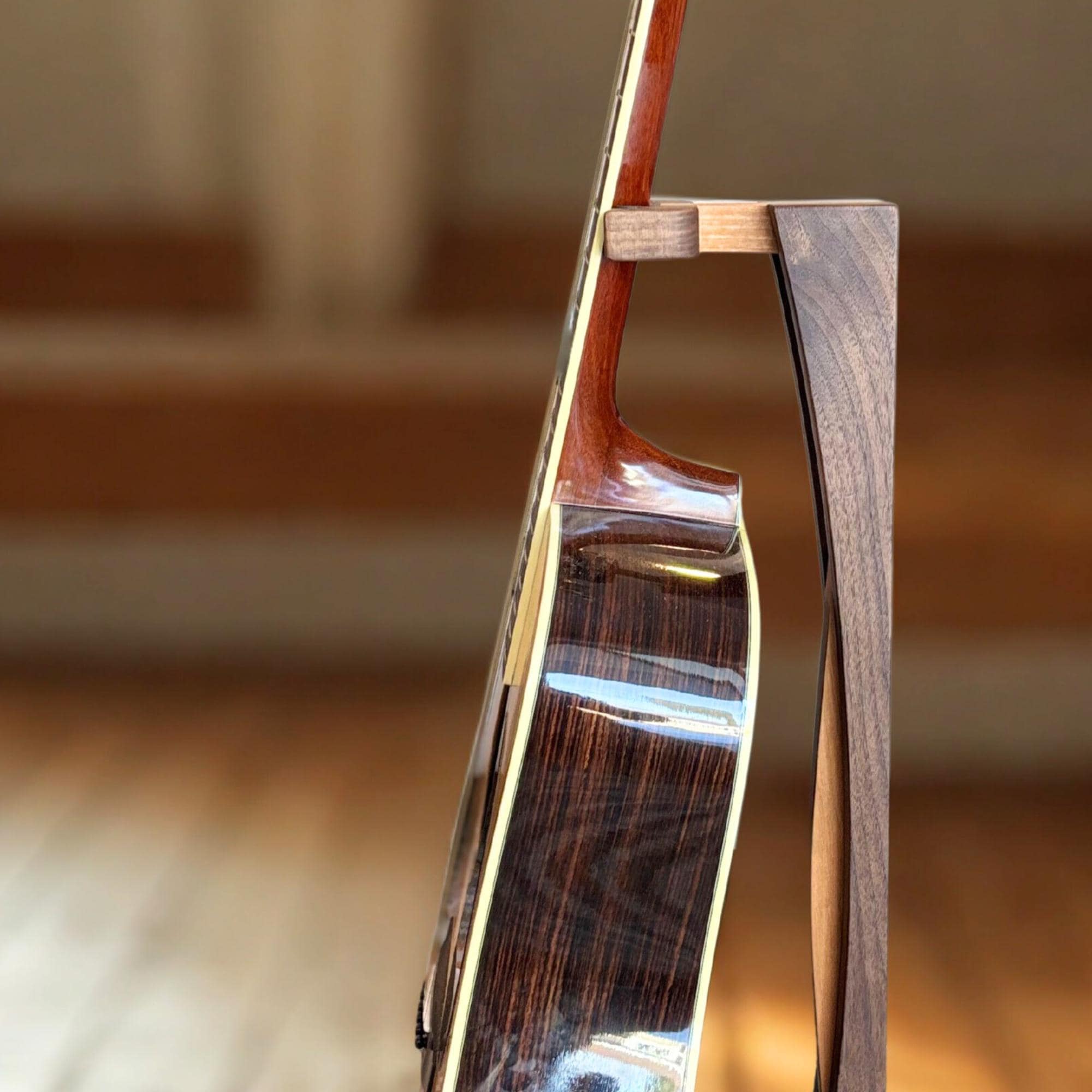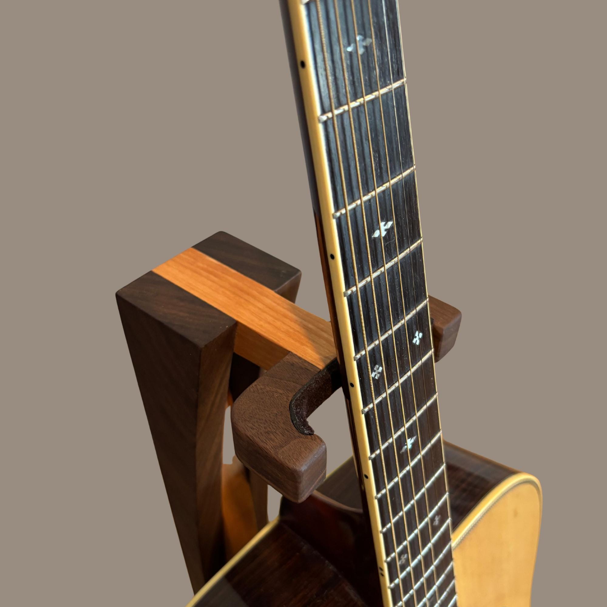 Quality Craftsmanship: Each stand is expertly constructed, sanded, and finished to ensure a high-end look and feel. I personally handpick and source all materials to guarantee that you’re getting only the best. Thick felt pads cushions the neck of the guitar and on the base resting arms to keep your cherished guitar safe.
