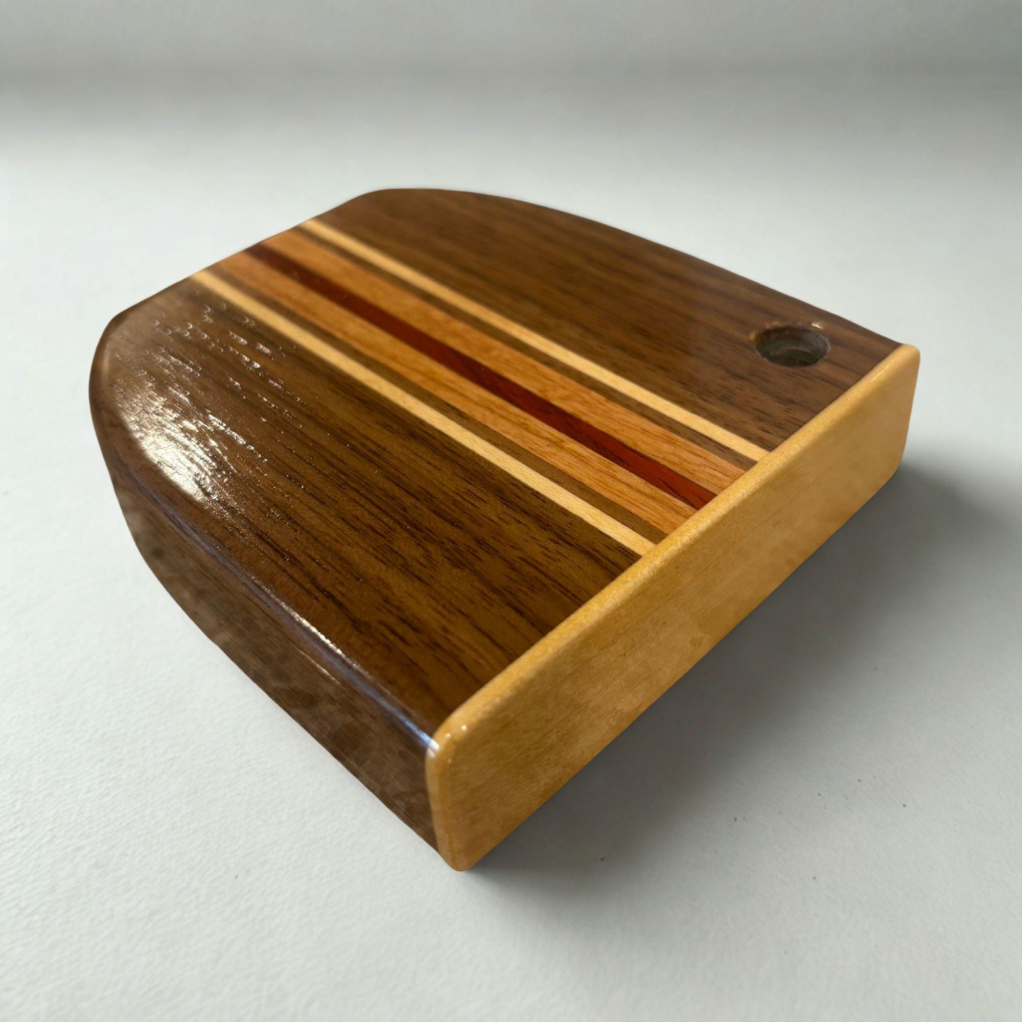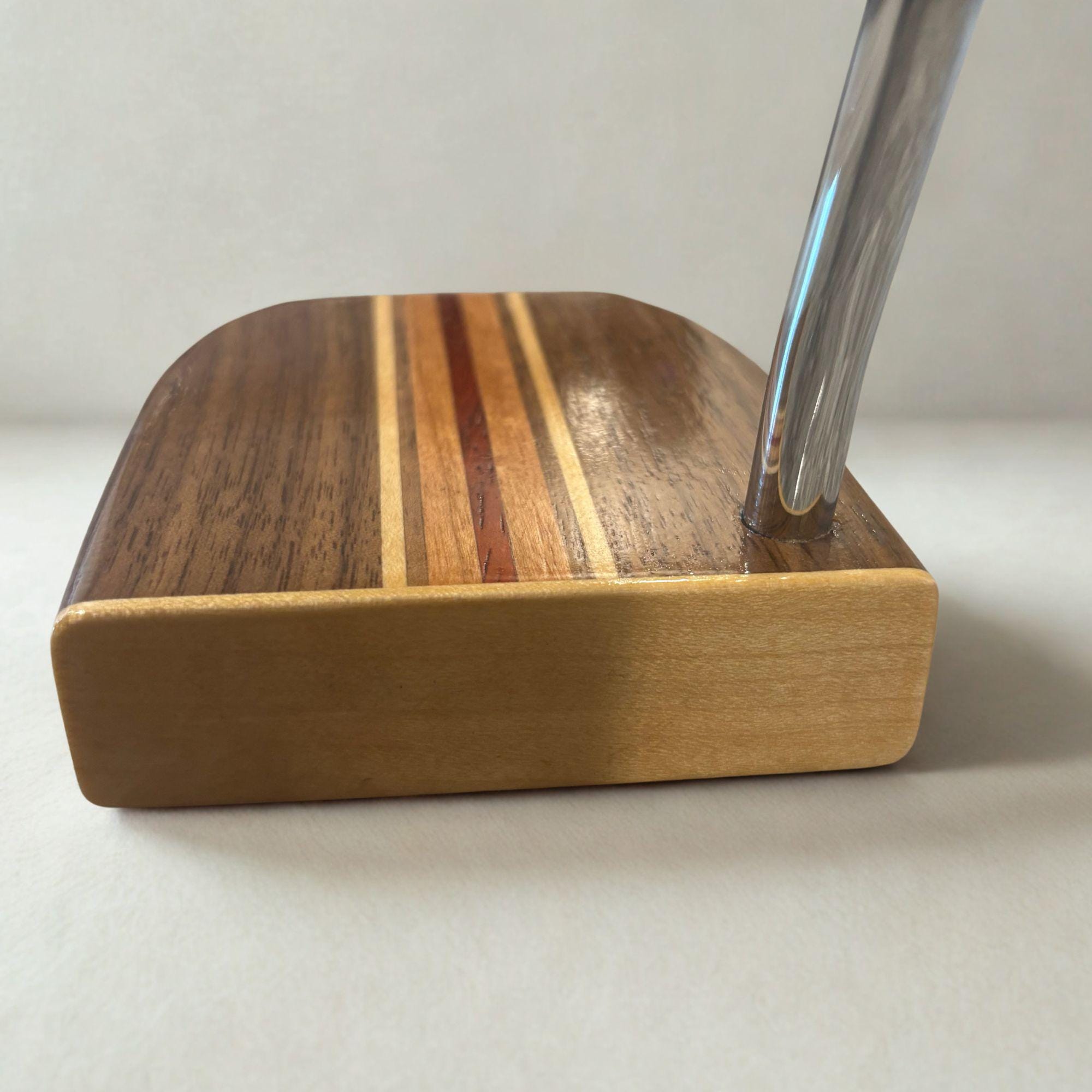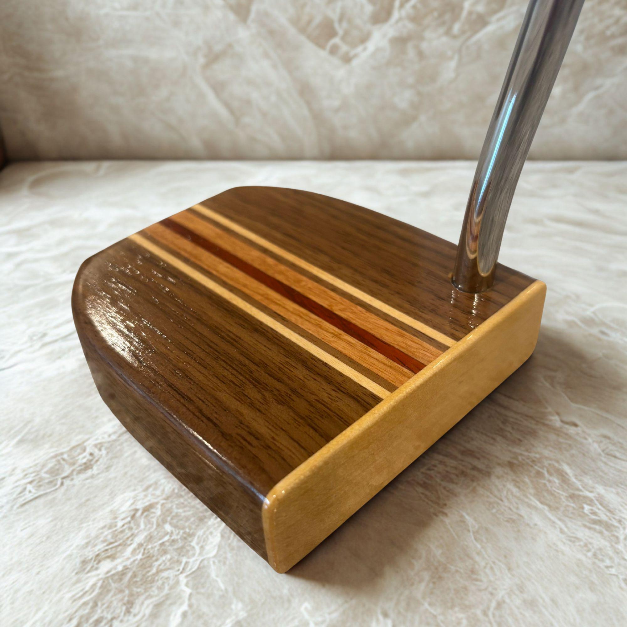 Exquisite Craftsmanship: The head of this putter is made from beautiful Walnut and is accentuated by striking Maple and Cherry and features a red padauk guide line, making every putter a unique and eye-catching conversation starter.