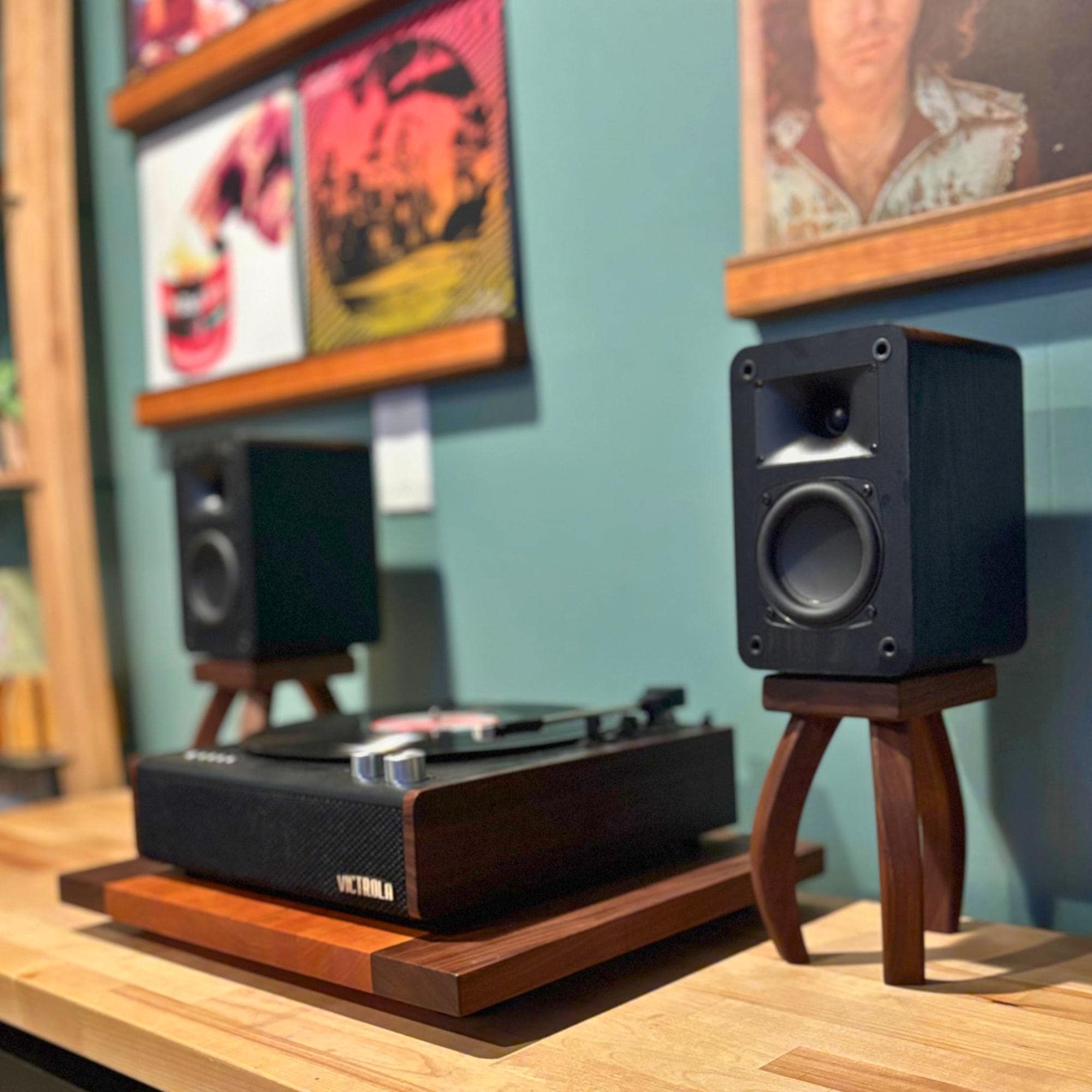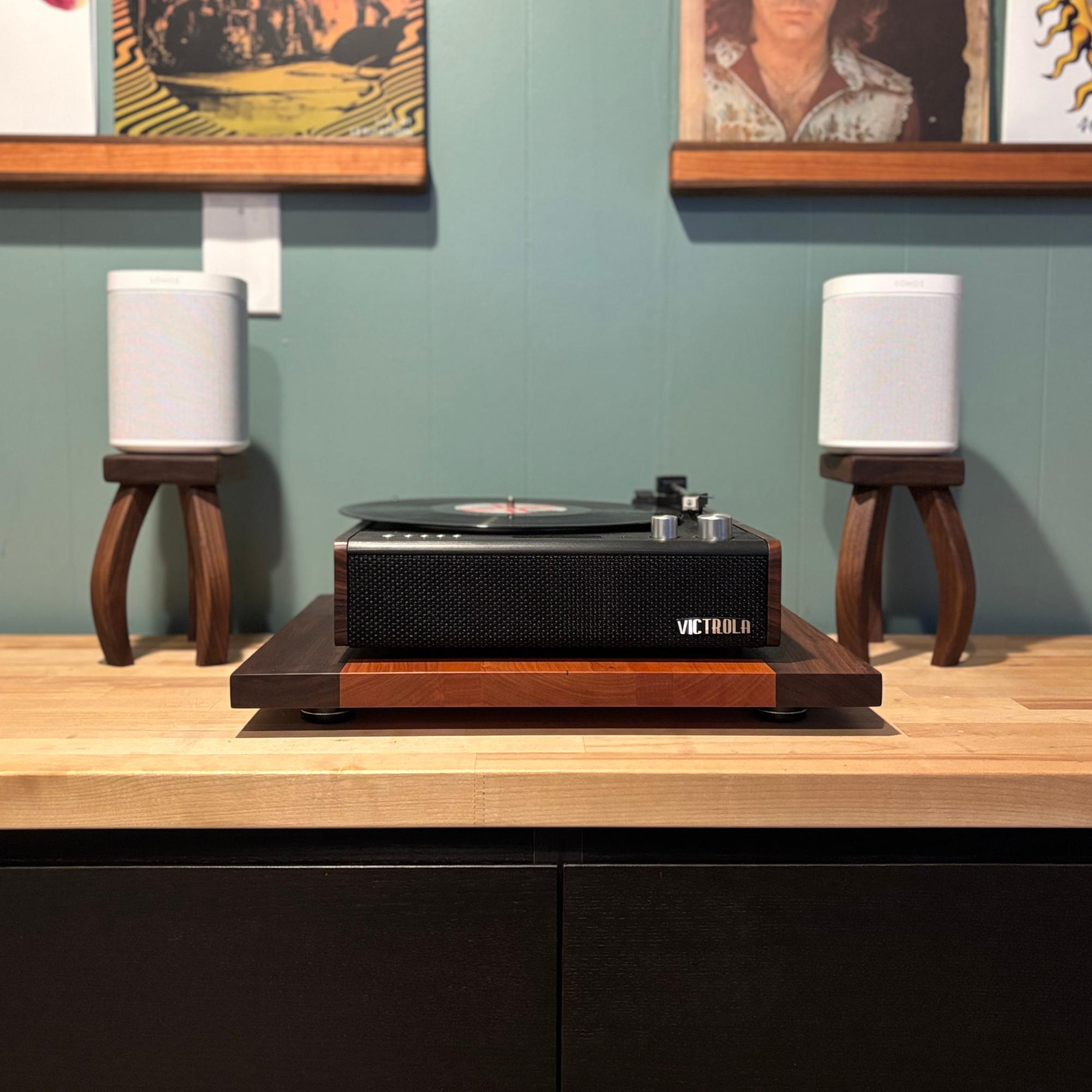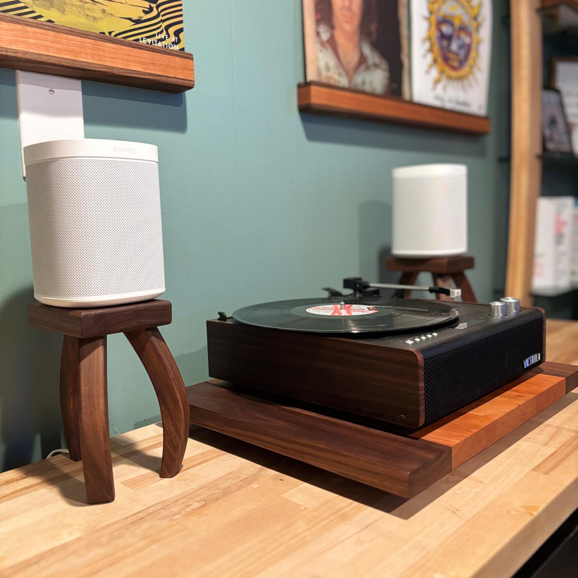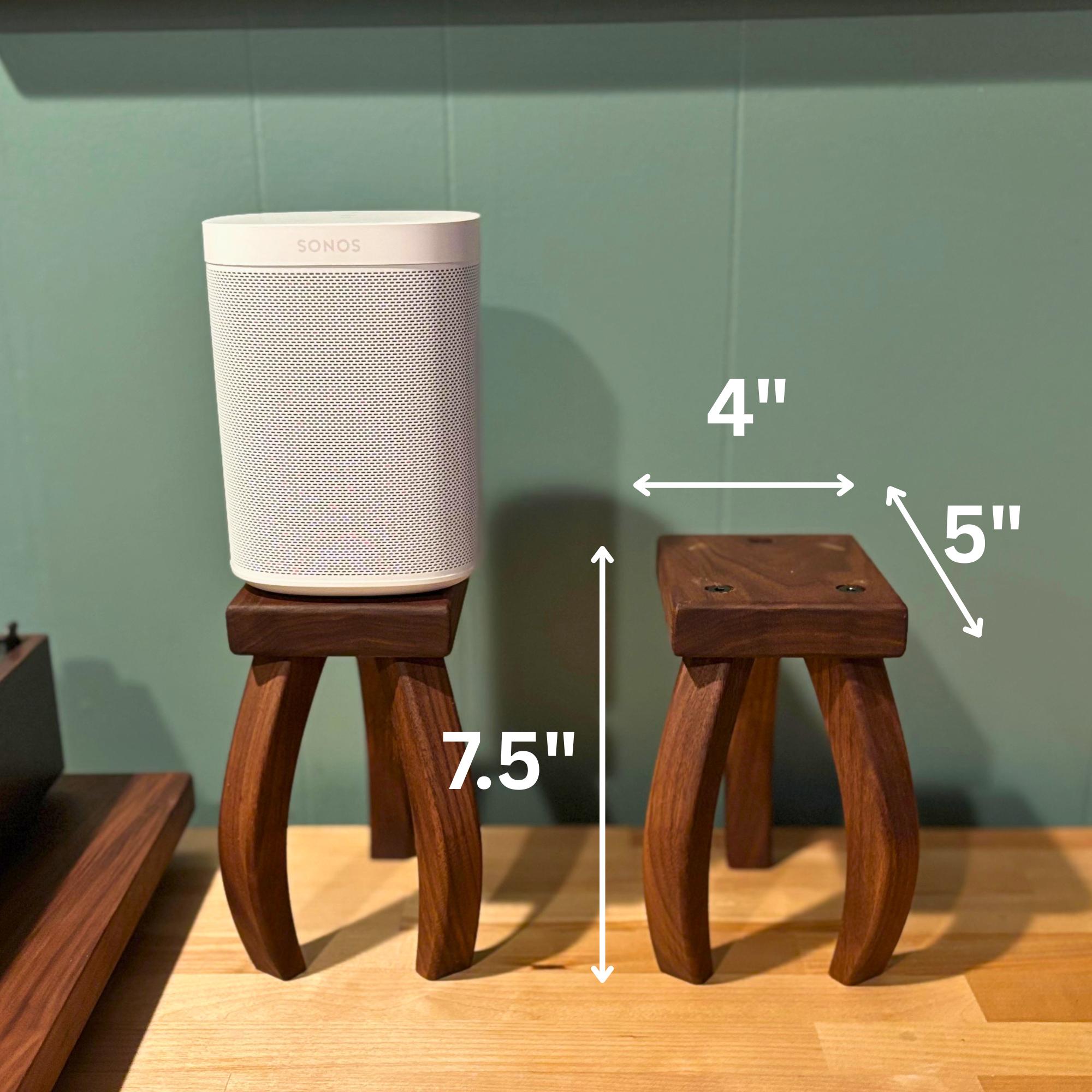 Inspired by H.G. Wells's "War of the Worlds", these mid-century modern design speaker stands will quite literally elevate your listening experience. Your speaker stands should be just as beautiful as any other piece of furniture in your home and these stands deliver. Soft edges and curved lines create a stunning addition to your room. Each piece is handcrafted one at a time, using premium walnut that showcases the rich, natural colors of the wood—no dyes or stains here! Finished with a nourishing oil and wax, these stands not only enhance the beauty of your speakers but also bring a touch of warmth and elegance to your space.